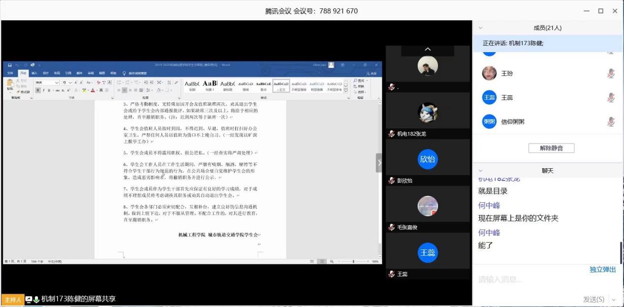 为响应教育部“停课不停学、工作不断线”的号召,我院学生会于3月22日召开了2020年第一次线上例会。