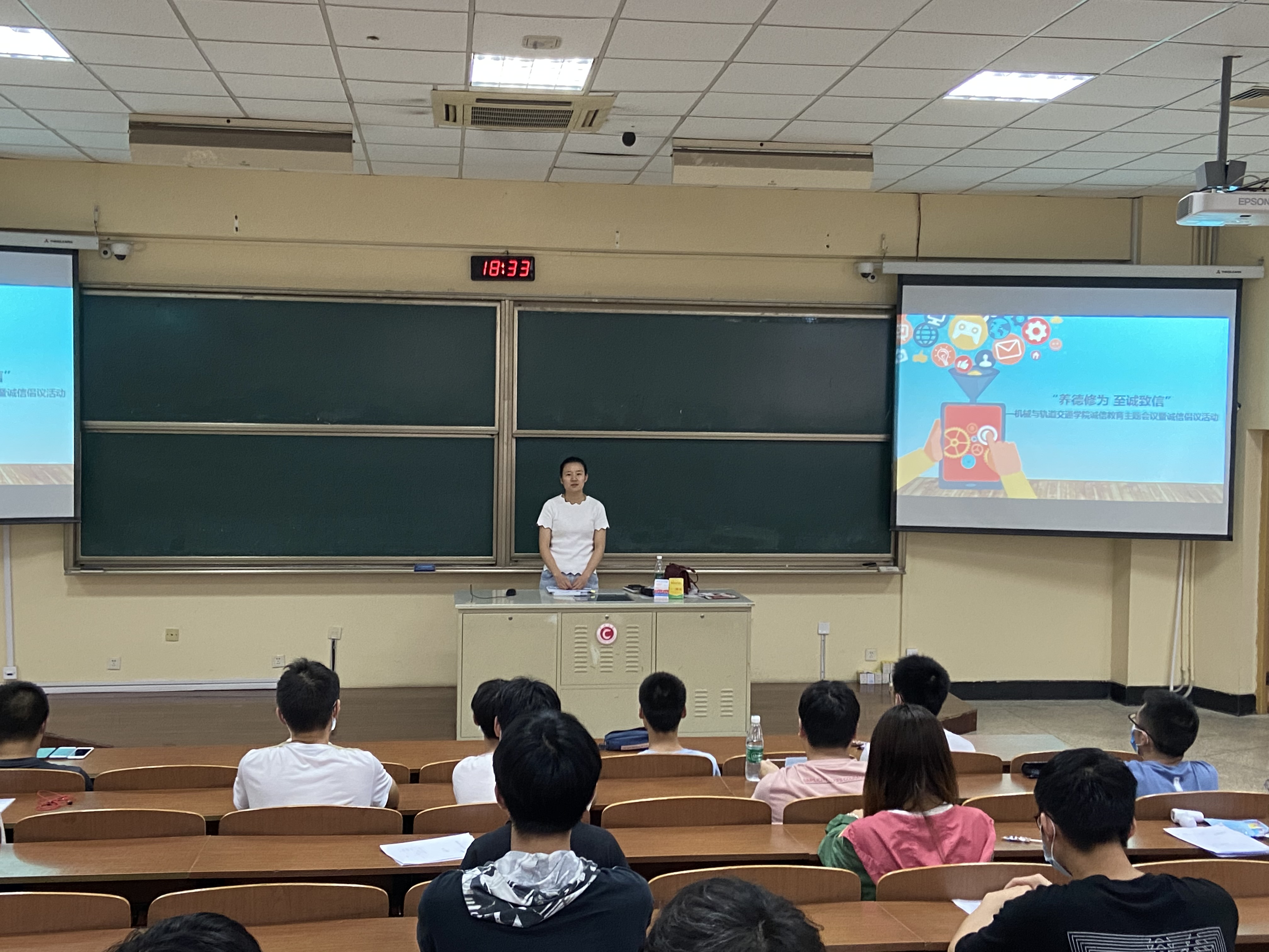为引导大学生树立诚信意识,养成诚信的良好习惯,全面提高大学生的思想道德素质。近日,我院在W4阶梯教室举行了“养德修为 至诚致信”主题会议。院学工办常娜及机械轨道学院本科、研究生受助学生代表参加了本次会议。
