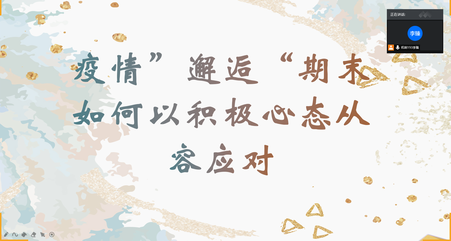 本次心理健康安全教育知识讲座圆满结束,在此次疫情和期末的重要时间节点给予同学们许多帮助,相信每位同学都可以克服心理障碍,取得优秀的成绩。