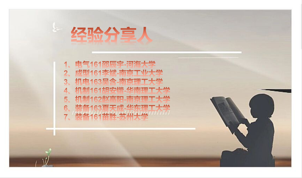最后,学长们寄语我们要:面对现实,承认困难,激发自己的斗志,为了梦想而拼搏;坚定考研的信念,拿出自己高考时的韧劲,在接下来的半年中再接再厉,成功上岸;克己慎独,时刻保持高度的自律性,学会自省,在反思中进步,在总结中收获。