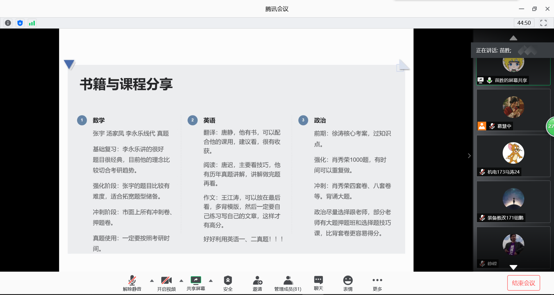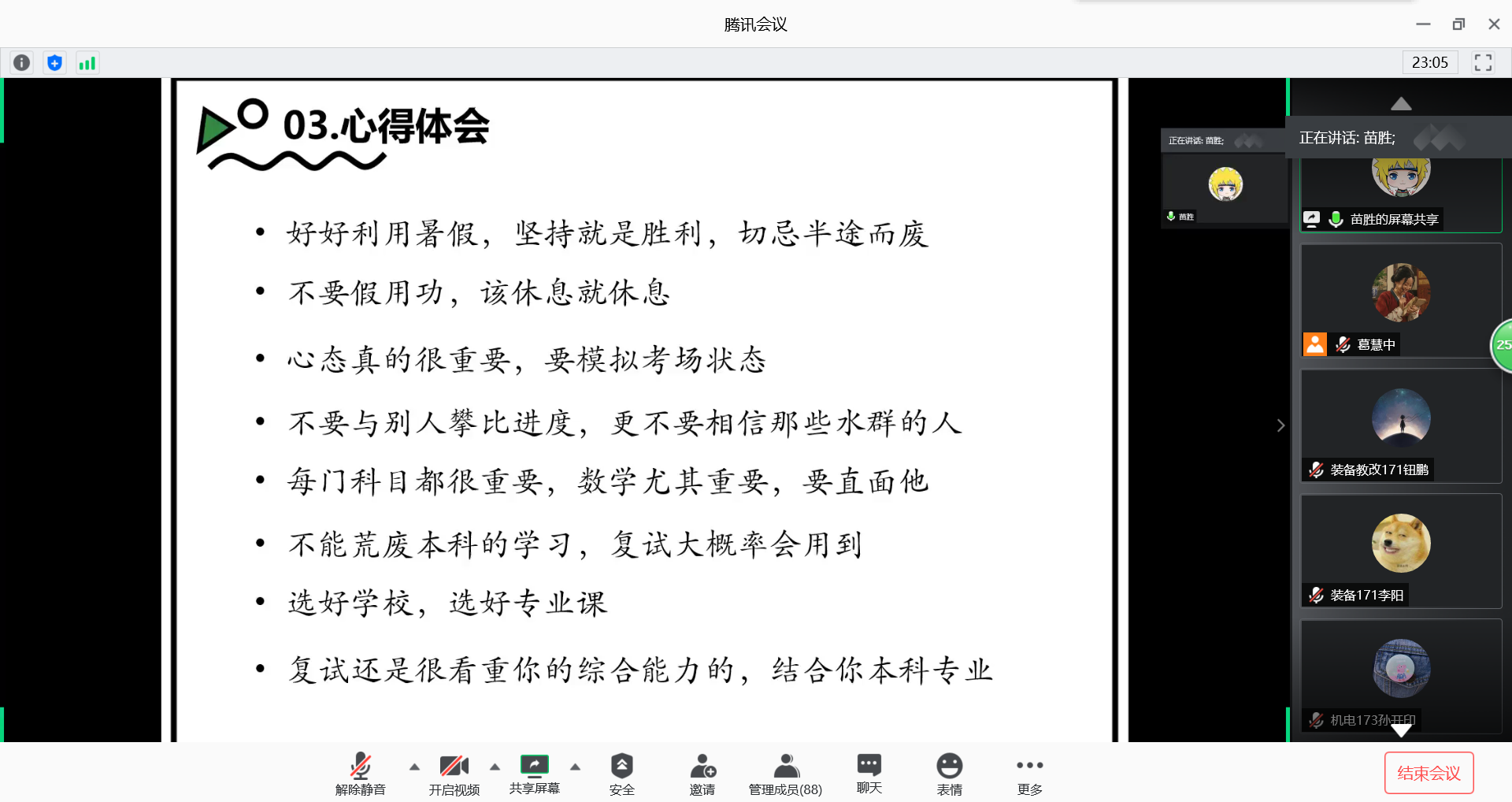 最后,此次考研经验交流会在主持人的总结后圆满结束。