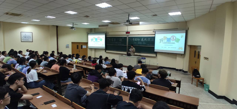 在随后的“心有信仰 乘风破浪”主题讲座中,我院优秀研究生师承诚,为大家讲述了自己的创业经历以及充实的研究生科研生活,点燃同学对创新创业的兴趣,以及对研究生科研生活的憧憬。我院优秀本科生颜猛,则结合自己的经历,总结出同学们在大学生活要有明确的目标、要善于把握机会、要有较强的执行力等几点建议,为同学们充实大学生活、提升工作能力提供了参考。