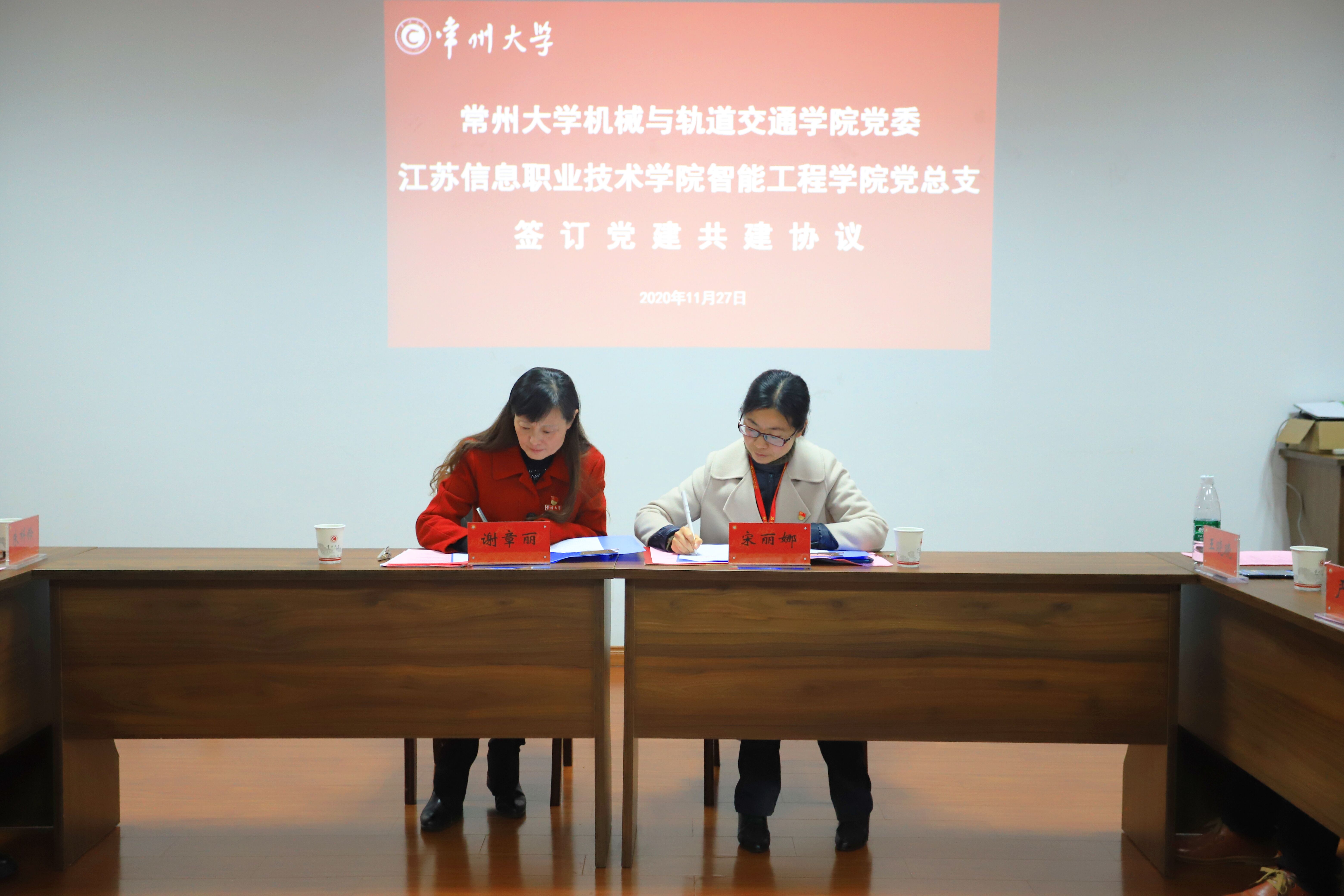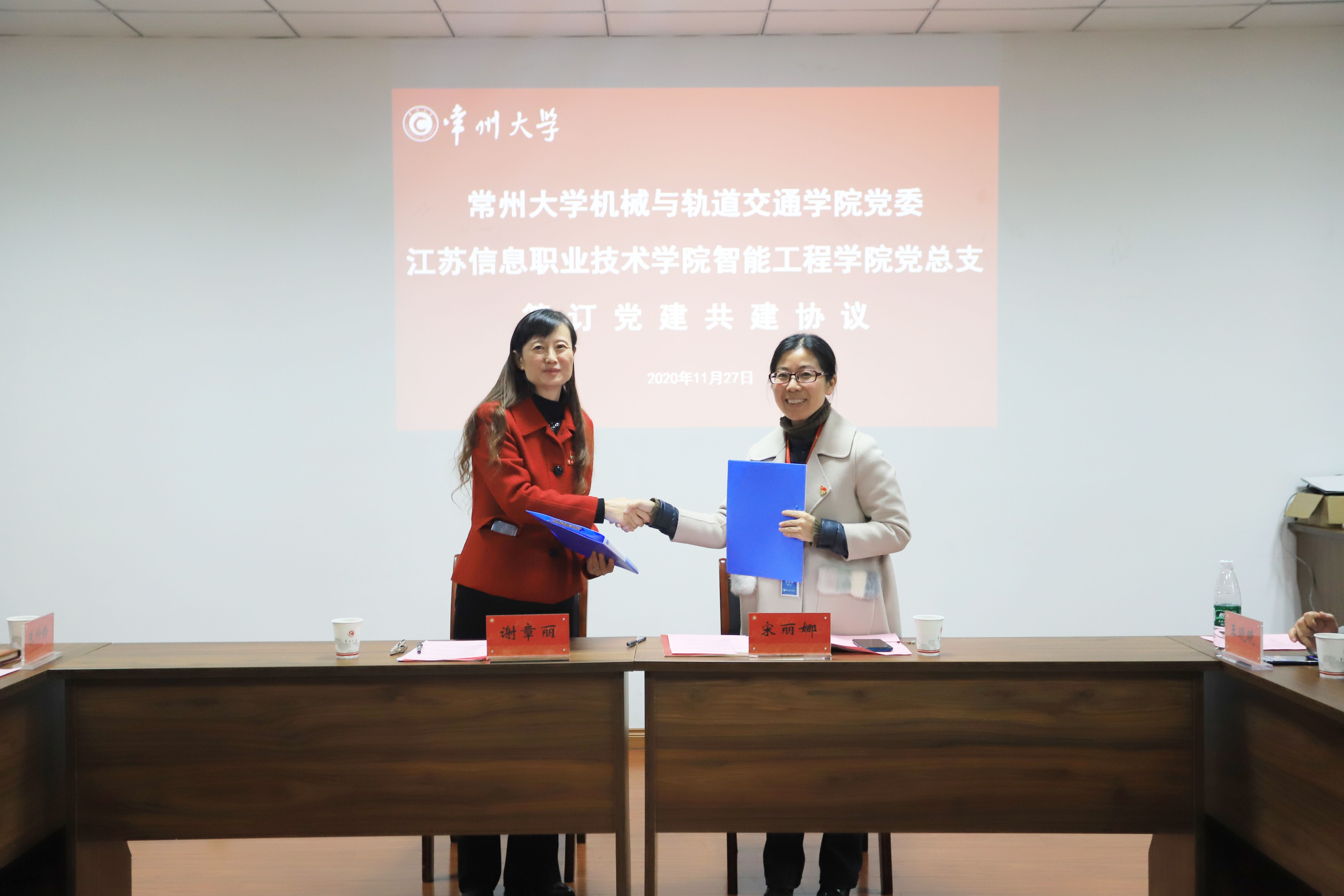 11月27日,江苏信息职业技术学院智能工程学院党总支、常州大学机械与轨道交通学院党委党建共建签约仪式在乐行楼举行。江苏信息职业技术学院党委委员、组织部部长宋丽娜,智能工程学院院长甘辉,党总支副书记孙静,副院长严惠,模具专业教师代表及模具班40名新生参加。常州大学机械与轨道交通学院党委书记谢章丽,院长张屹以及班子其他成员和专业教师参与相关活动。活动由机械与轨道交通学院党委副书记葛涛主持。
