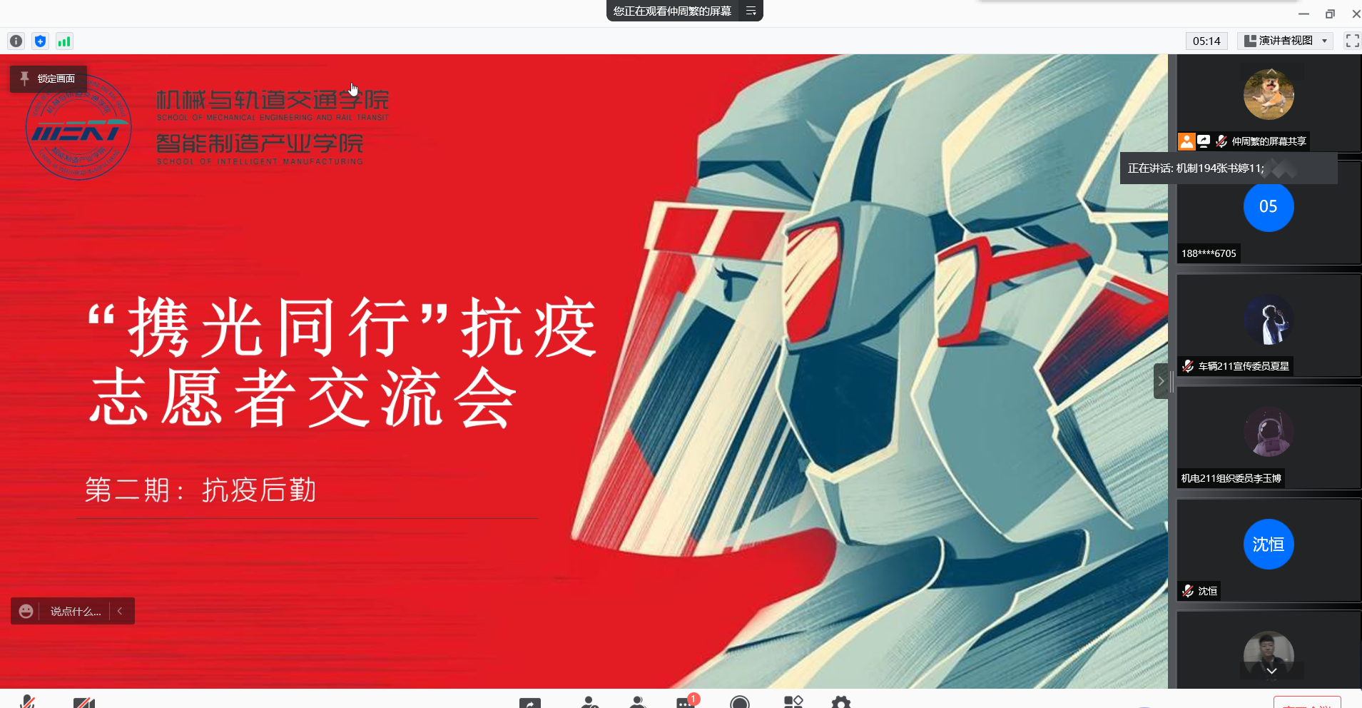 2021年11月23日晚,机械与轨道交通学院、智能制造产业学院在线上成功举办了“携光同行”抗疫志愿者交流会第二讲,邀请到了尤骏、张书婷、管李三名优秀志愿者进行介绍。