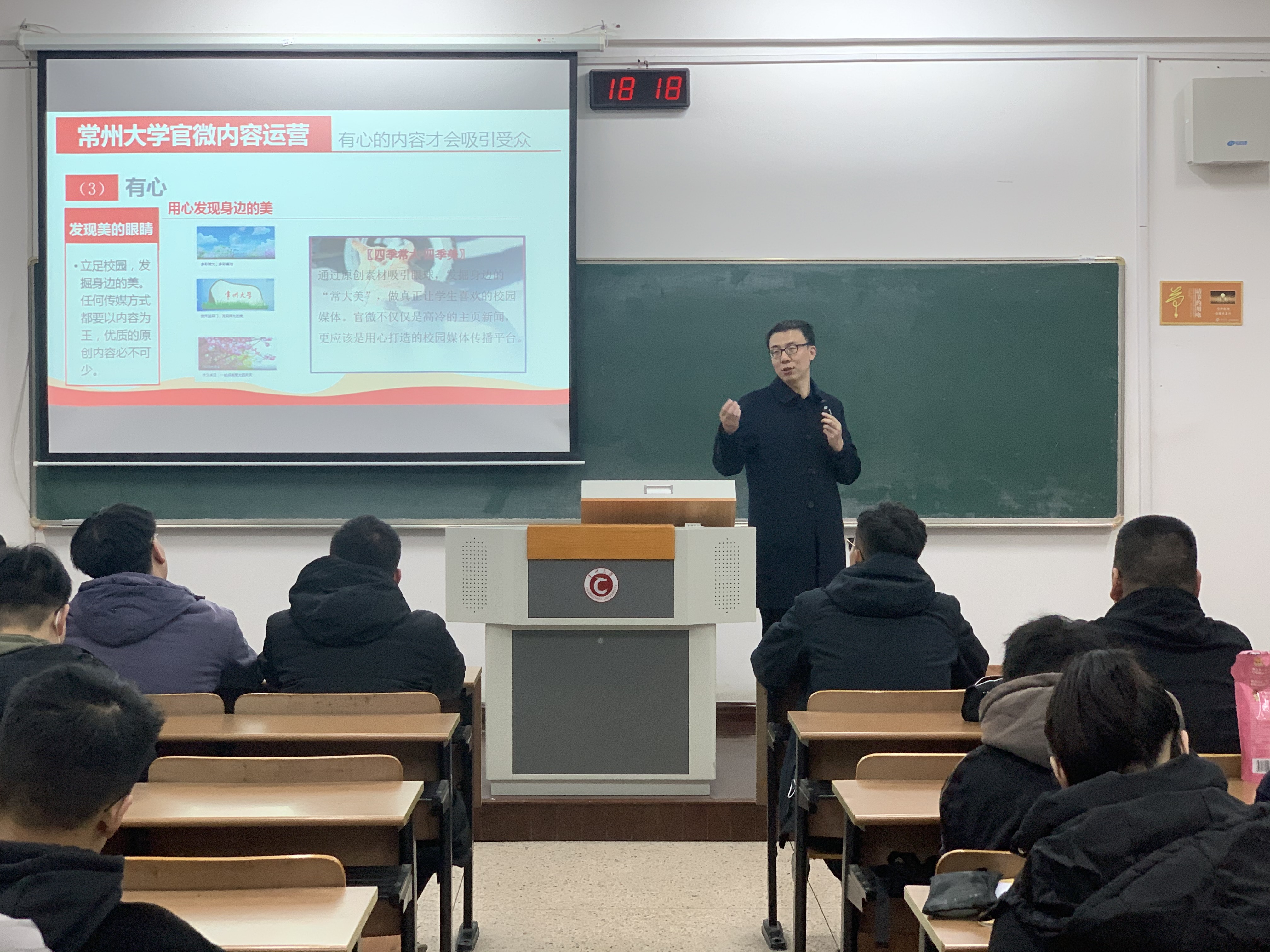2021年12月2日晚,求索讲堂第九期第四讲于主楼W1510教室成功召开。本次报告的主讲人是常州大学党委宣传部的徐寅老师。机械与轨道交通学院、智能制造产业学院新媒体中心全员以及部分对此感兴趣的同学参与了本次讲座。