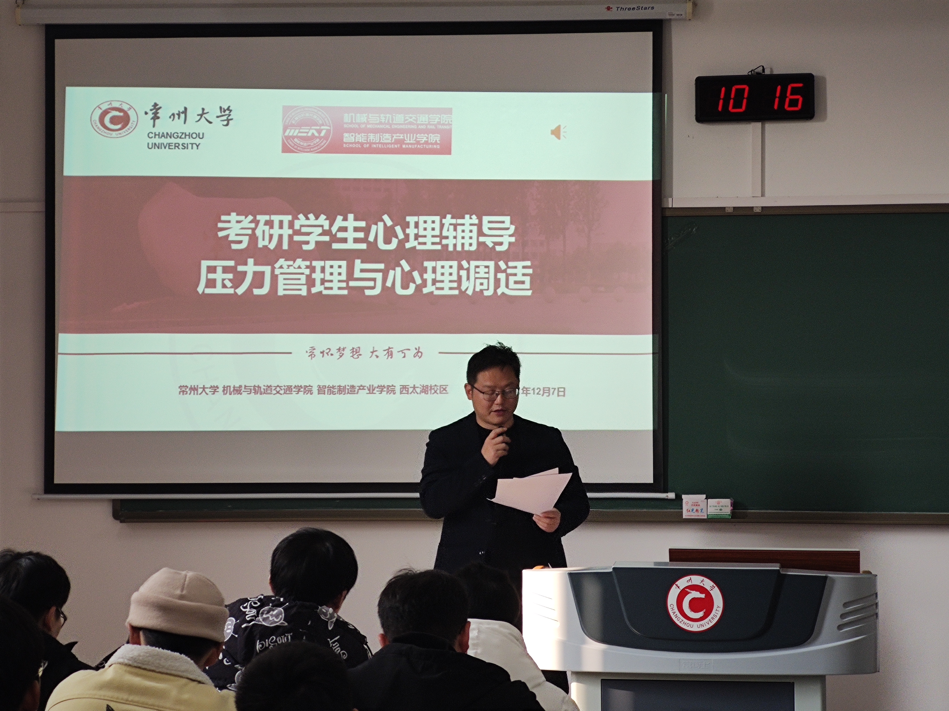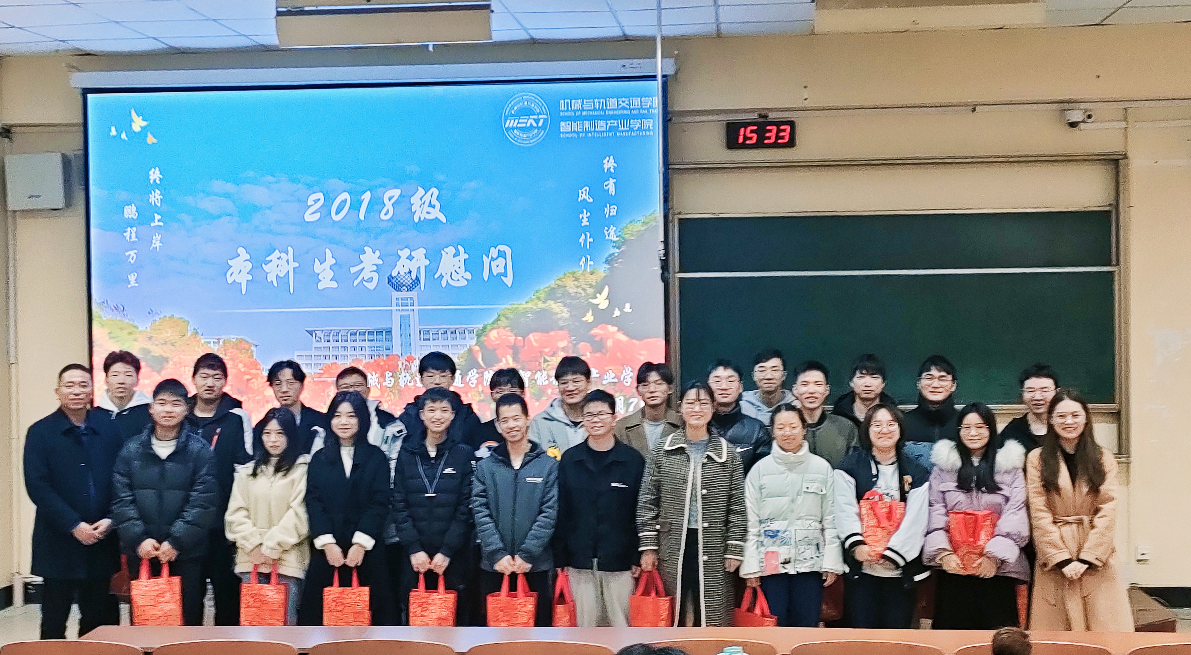 为鼓励我院2018级考研学生在最后的冲刺阶段坚定考研信念,保持学习热情,我院于12月7日上午开展西太湖校区2018级本科生考研慰问大会,下午在W3阶开展科教城校区2018级本科生考研慰问大会,机械与轨道交通学院党委副书记葛涛及毕业班辅导员出席本次大会。