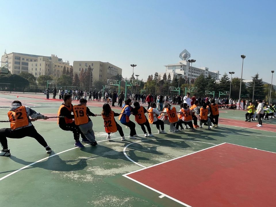 为了丰富学生们的课余文化生活,增进学生之间的交流,增强学生的凝聚力,培养学生的团队合作能力,我校于 2021年12月4号,在篮球场举办了“新老生拔河比赛”。