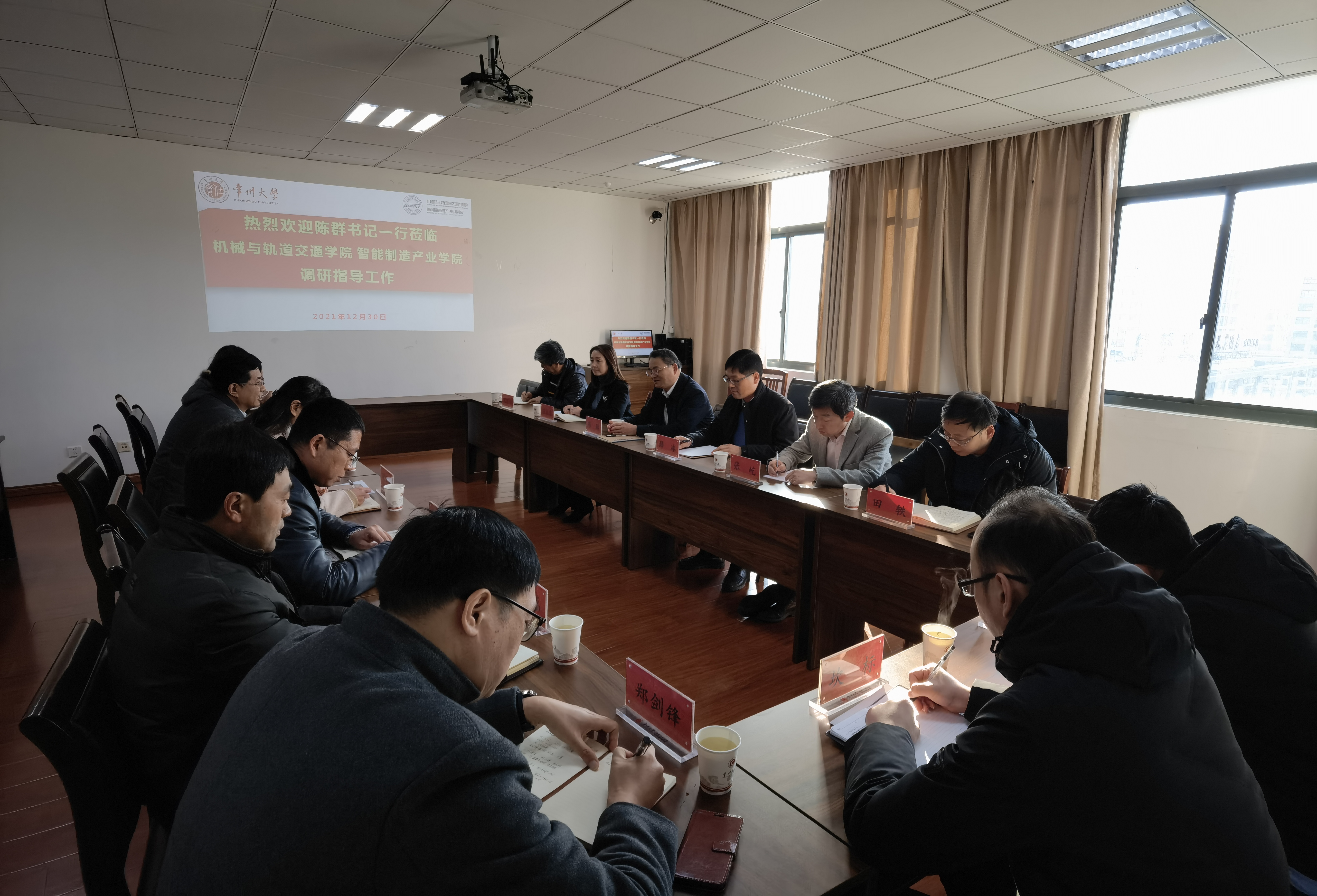 12月30日上午,校党委书记陈群、校学科办、教务处、科技处、产学研处、校办负责人一行赴机械与轨道交通学院、智能制造产业学院调研指导工作,机械学院党委书记谢章丽、院长刘雪东、学院全体领导班子成员参加调研座谈会。