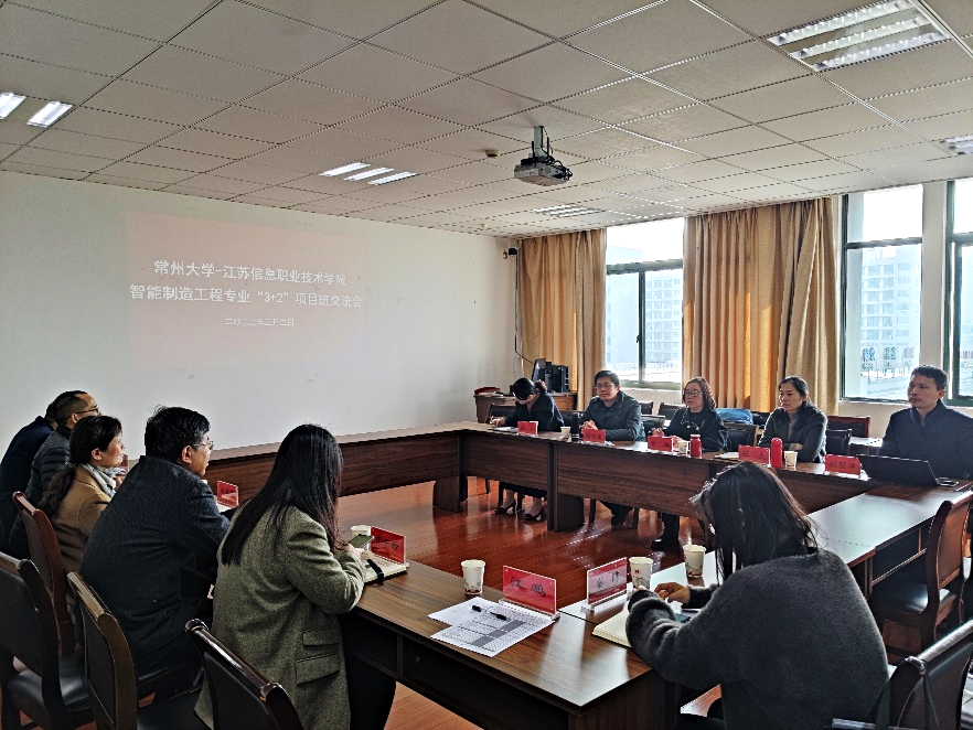 2022年3月2日,江苏信息职业技术学院智能工程学院甘辉院长一行5人来我院调研交流。学院党委书记谢章丽、院长刘雪东、副院长朱科钤、智造专业相关教师和学工老师参加交流会。