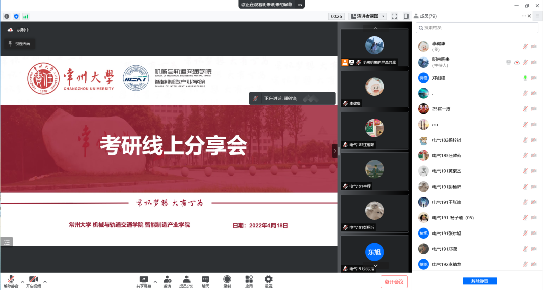 为进一步加强同学们对研究生入学考试的认识,帮助同学们尽早明确考研目标,激发考研斗志,我院于4月18日举办了机电专业、电气专业两场线上考研分享会。