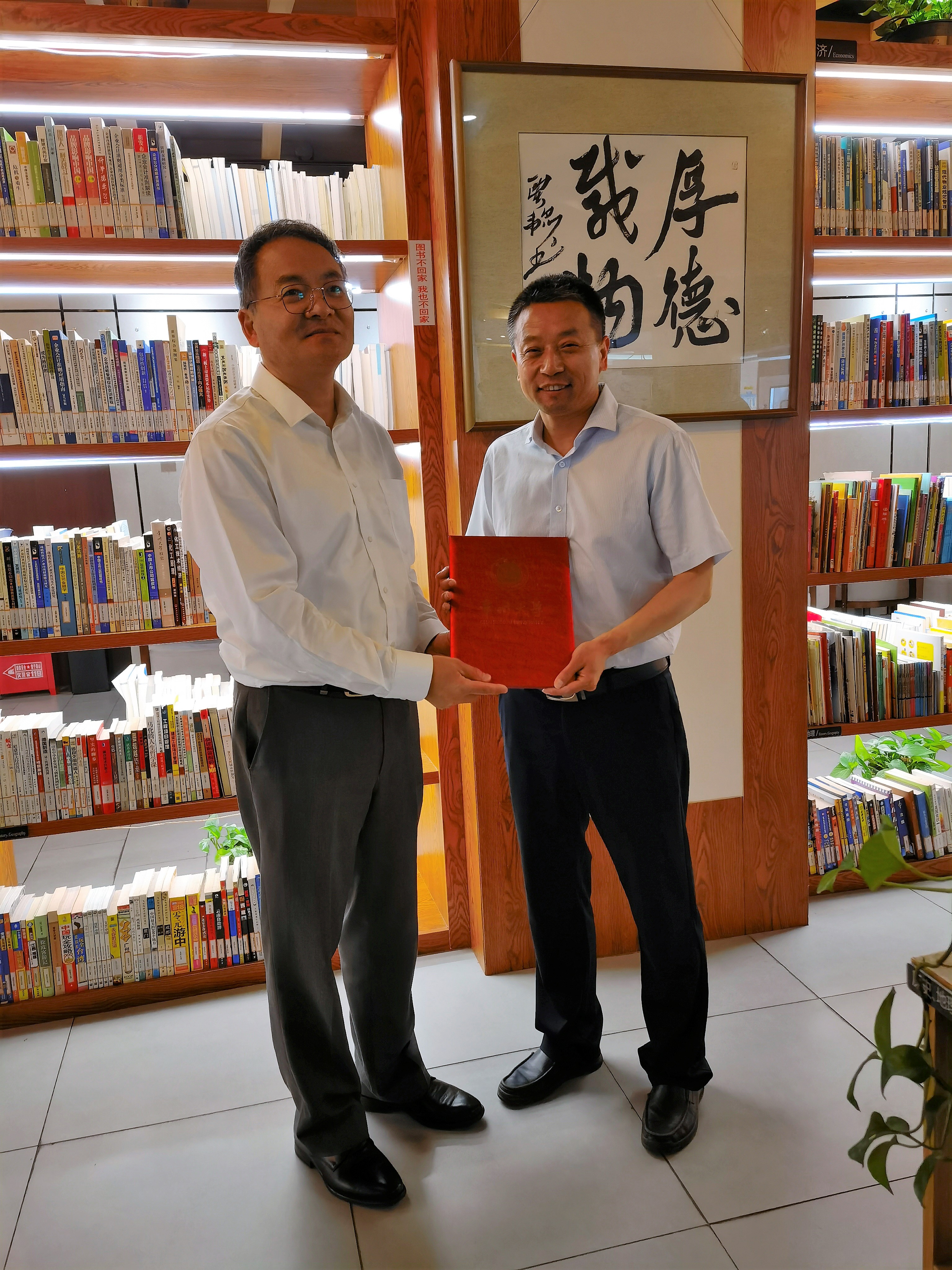会后,校党委书记陈群为国家重点实验室主任王有云、研究中心主任朱奇先颁发兼职教授聘书。陈书记指出要充分发挥我校学科、平台、人才队伍及行业等方面的优势,依托机械与轨道交通学院、能源化工装备研究院与大型电气传动系统与装备技术国家重点实验室开展全面深入合作,力争在国家卡脖子等重大问题与关键技术上取得突破,共同引领行业的科技发展。