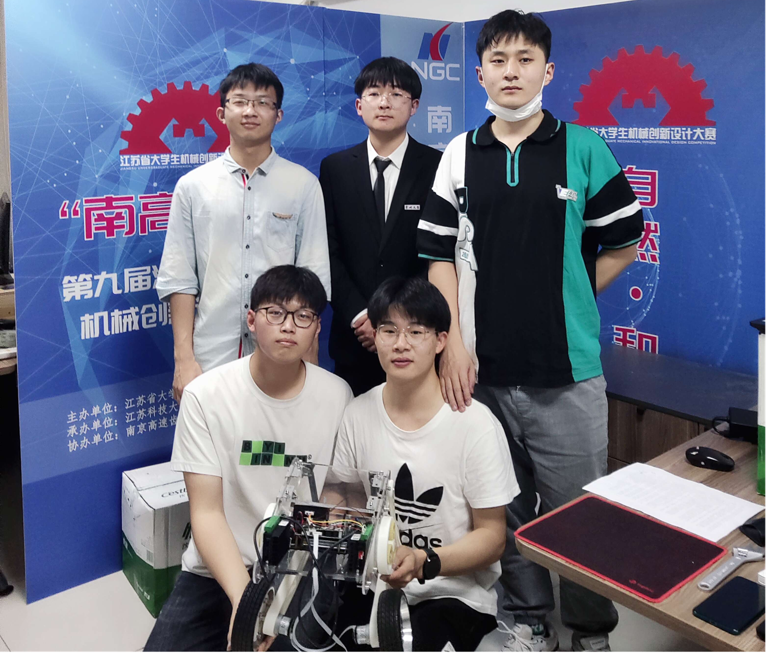一等奖队伍“基于PAM技术的仿袋鼠腿悬架”团队合影
