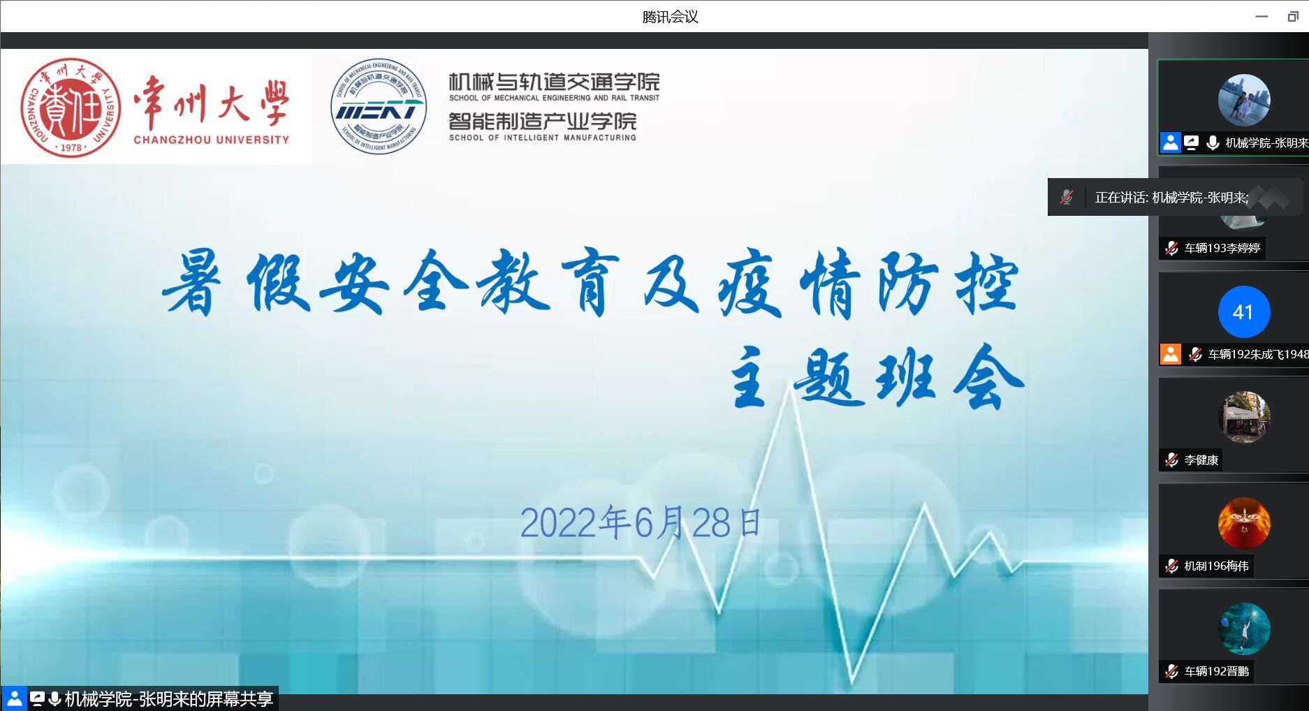 为进一步加强假期学生安全教育,确保学生度过平安健康的假期,根据学院工作部署,我院西太湖校区于6月28日早上10点通过线上会议的形式召开假期安全教育及疫情防控主题班会。辅导员张明来老师主持班会,全体学生参加会议。