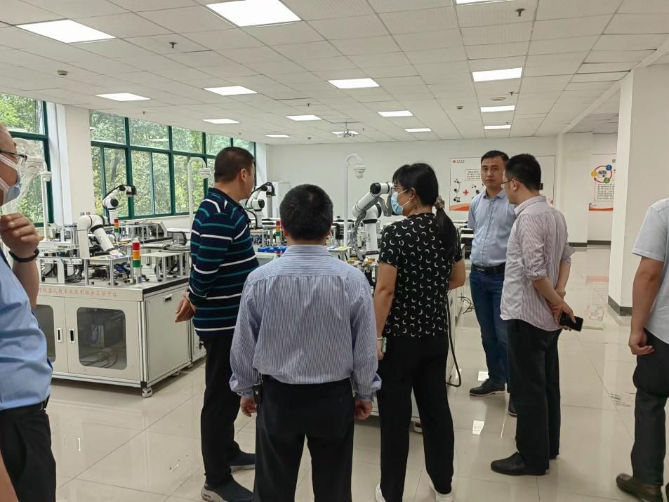 9月15日上午,遨博(江苏)机器人有限公司与我院智能制造专业围绕智能制造实训基地建设项目进行了洽谈与交流。我院院长刘雪东、智能制造专业负责人佘世刚及相关专业老师参与了项目的沟通与交流。会上,院长刘雪东对我院开展智能制造实训基地建设的初衷与目的进行了简要介绍,并对拟购置的智能制造相关设备与我校青年教师的科研项目结合提出了宝贵建议。专业负责人佘世刚就智能制造基地建设与专业相关课程实训教学进行了介绍,专业其他老师也同企业相关人员进行了广泛的技术交流。会后,我院相关老师一同参观了遨博(江苏)机器人有限公司的工业机器人组装调试中心、研发中心等场地,对智能制造实训基地相关设备的进行了深入了解和讨论,进一步推动我院与遨博(江苏)机器人有限公司在智能制造实训基地项目上的合作与交流。