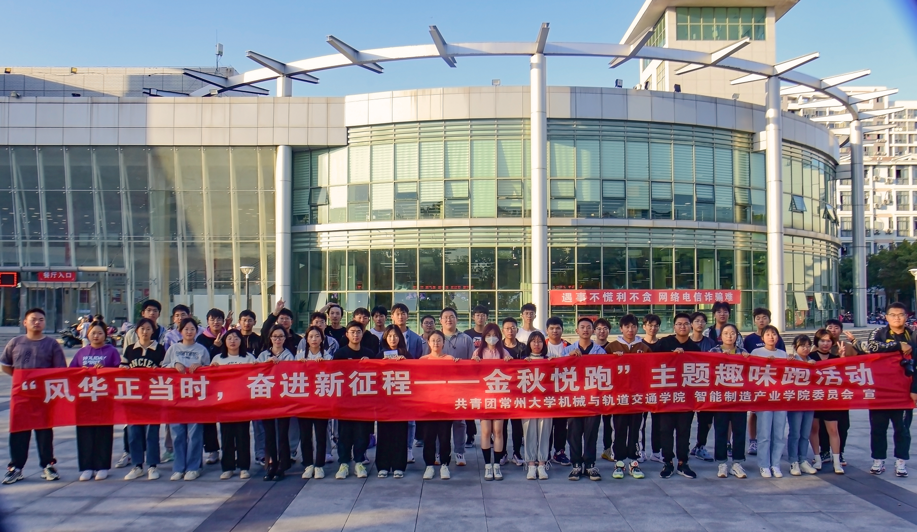 云天收夏色,木叶动秋声。为响应二十大的号召,在竞技中树立敢拼、敢奋斗的信念,促进高校学生,激发运动兴趣,缓解学习压力,树立团队合作意识。由机械与轨道交通学院、智能制造产业学院团委主办的“风华正当时,奋进新征程--金秋悦跑”主题趣味跑活动于2022年10月23日在常州大学武进校区正式举办。