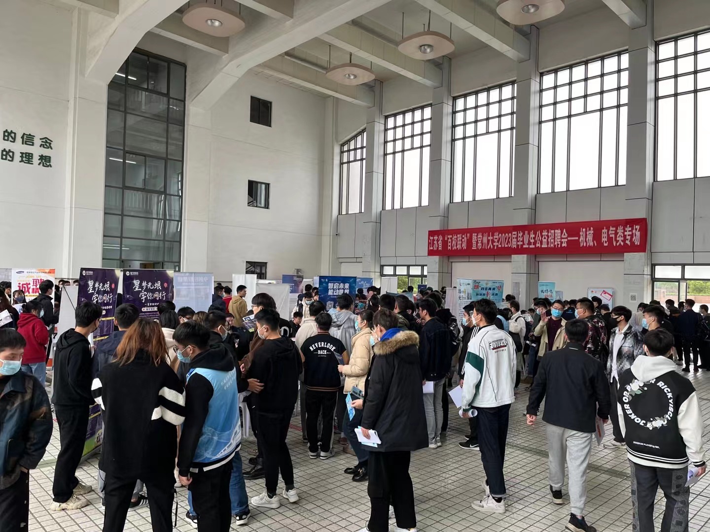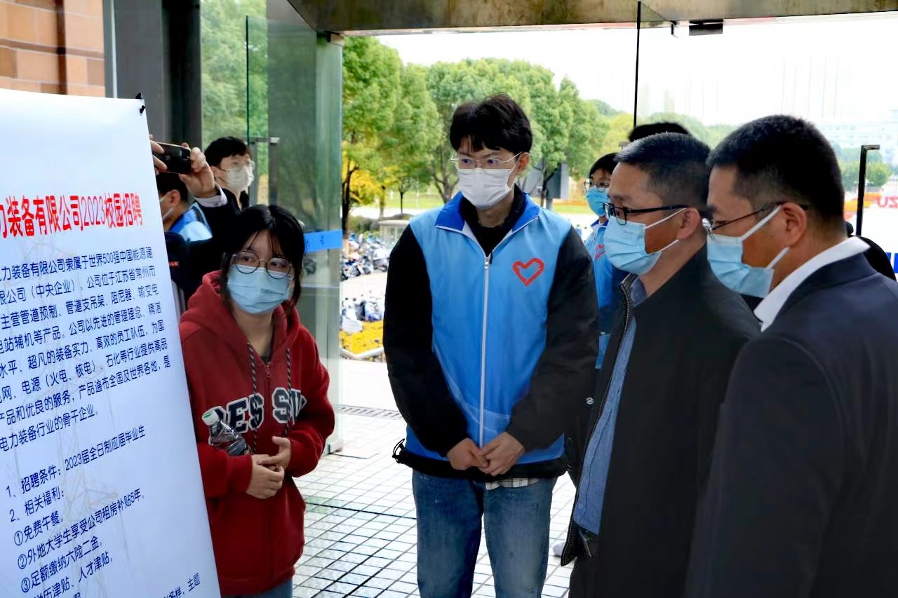 为深入学习贯彻党的二十大精神,积极响应省教育厅关于开展“江苏省2023届高校毕业生就业百校联动”的号召,进一步贯彻落实人才战略,健全就业促进机制,促进高质量充分就业。11月23日下午,我院在常州大学科教城校区教学主楼二楼平台顺利举办了“江苏省‘百校联动’暨常州大学2023届毕业生公益招聘会——机械、电气类专场”公益招聘活动。常州大学学工处副处长龙涌澜、院党委副书记葛涛来到了招聘会现场,关心慰问我院毕业生,并和用人单位积极沟通,了解市场行情、企业发展情况等。