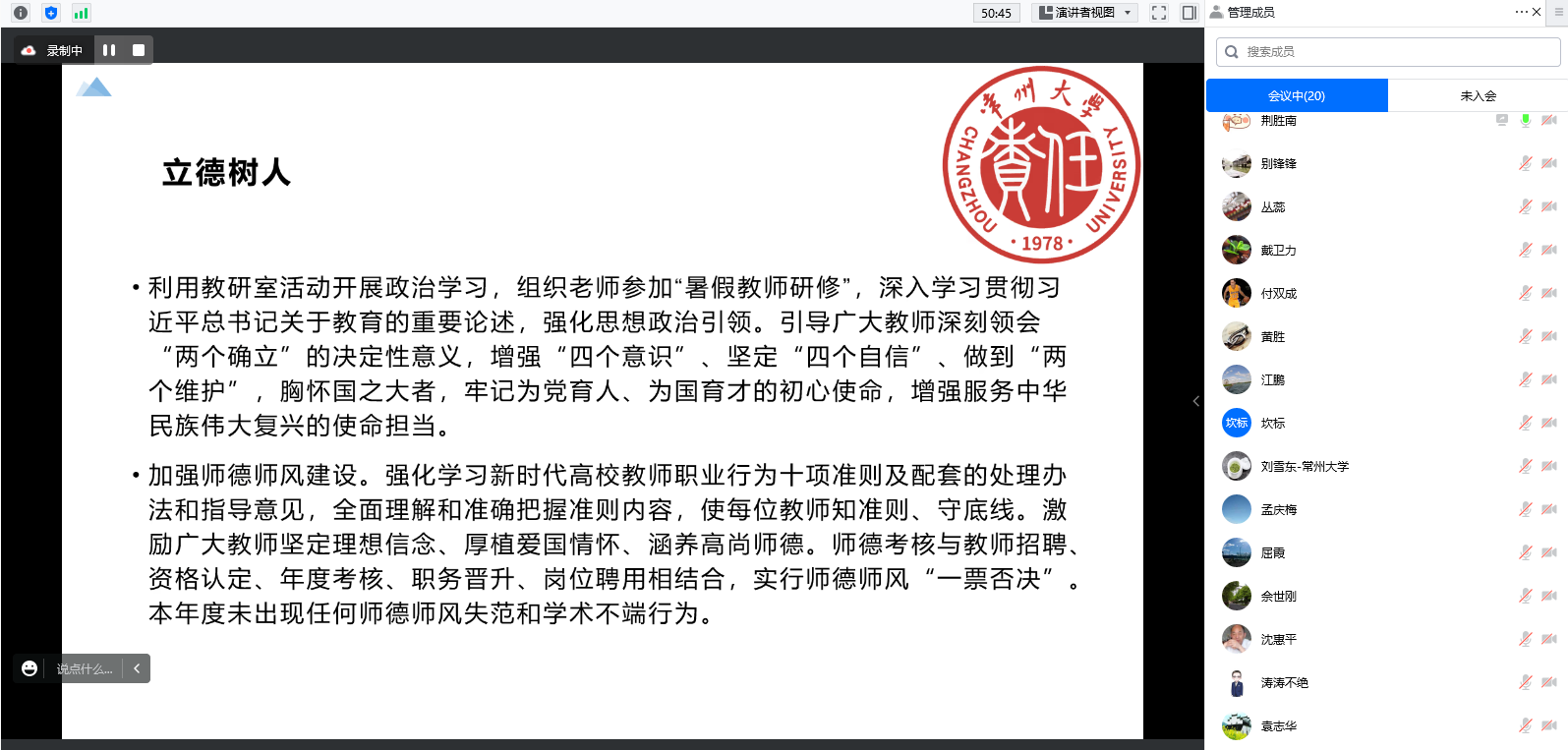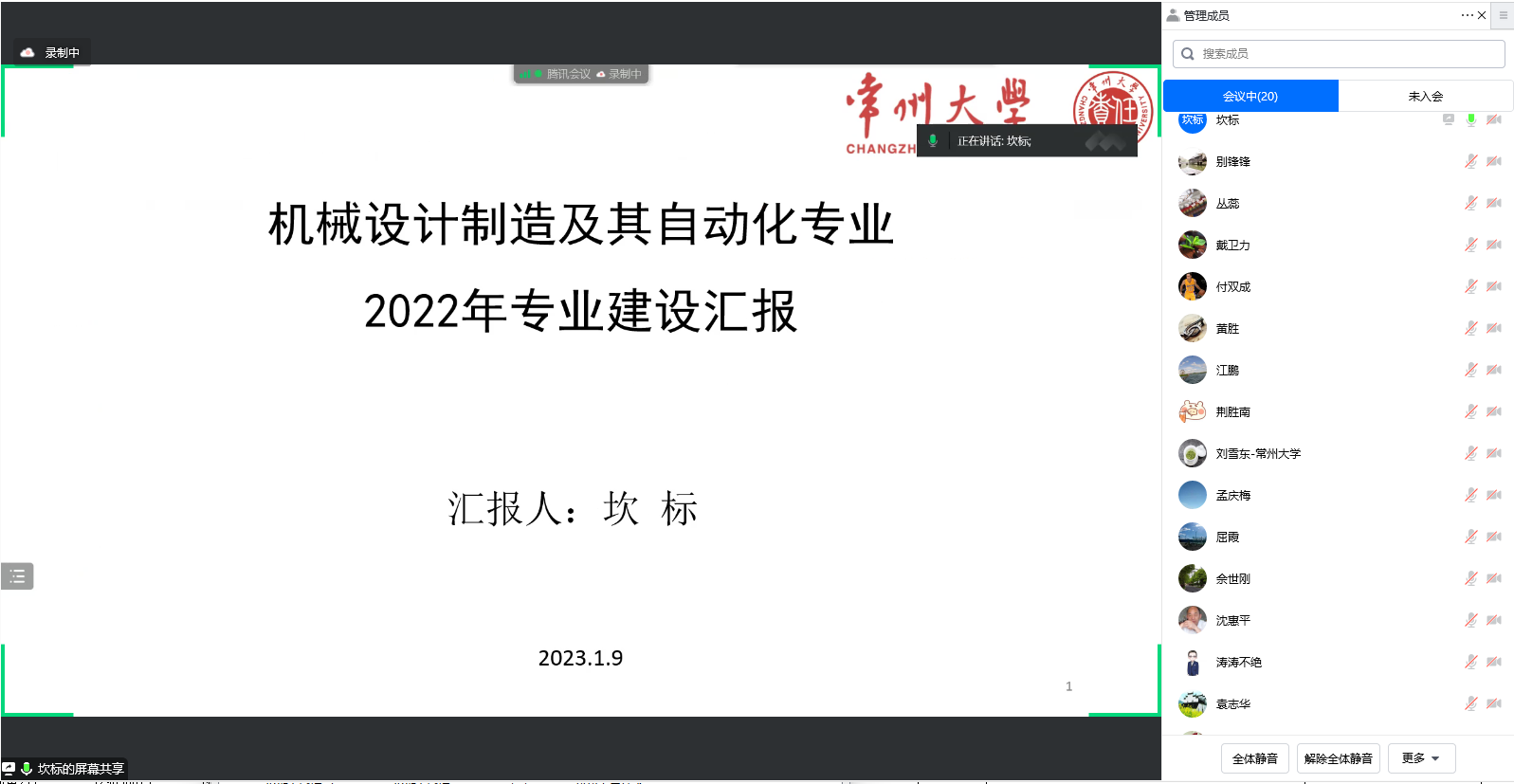 为进一步提高学院本科教学质量,1月9日下午,我院召开本科专业建设汇报会线上会议,学院领导班子成员、教师代表沈惠平、高光藩,以及全体专业负责人和基础教研室主任出席会议,教学院长朱科钤主持会议。