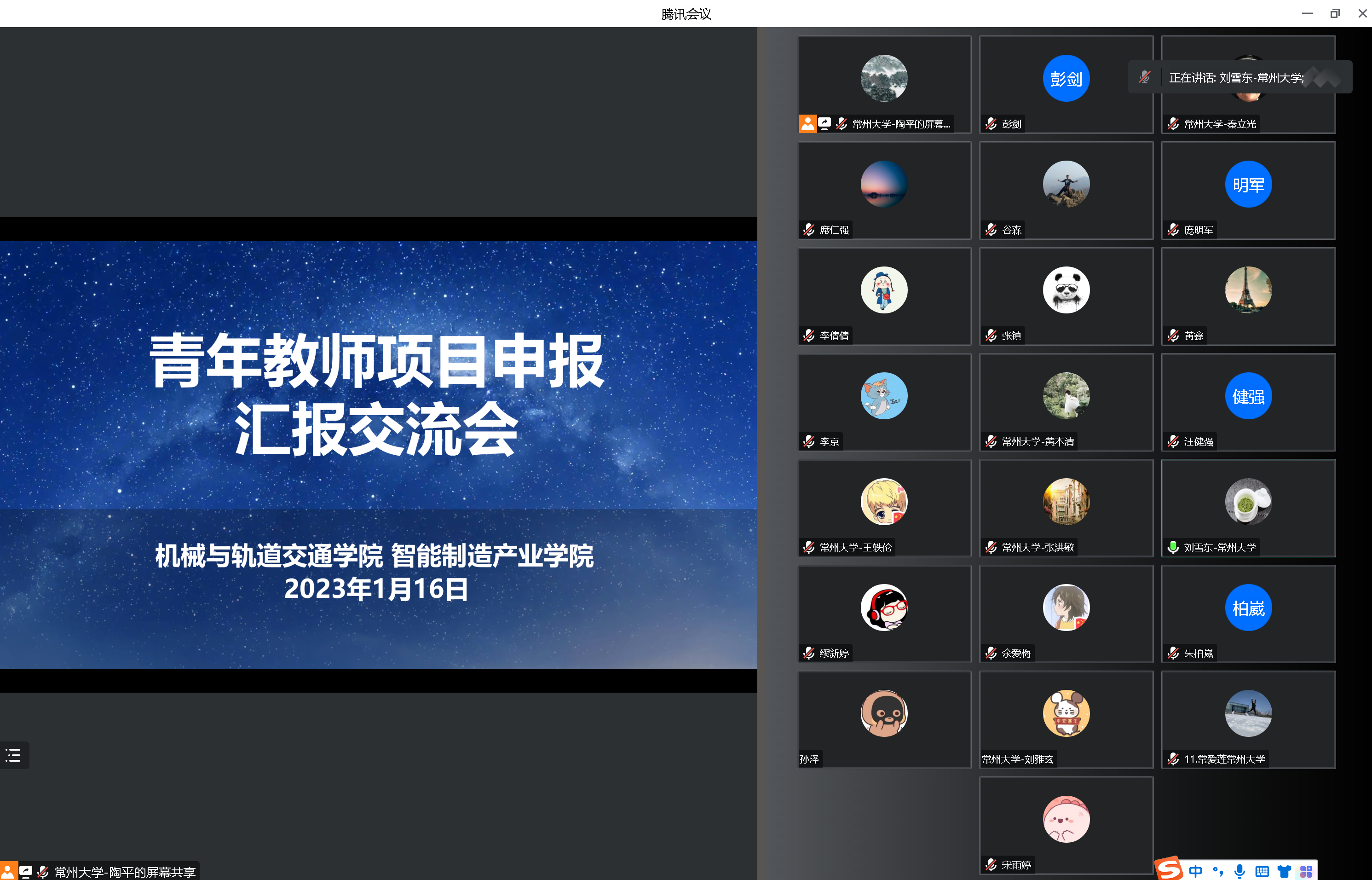为持续、有效推进我院国家自然科学基金申报工作,1月17日我院组织基金申报情况汇报与专家辅导会。科技处处长张屹、院长刘雪东、学院指导组专家和2023年申报青年基金的教师等60余人参加线上汇报与辅导会。