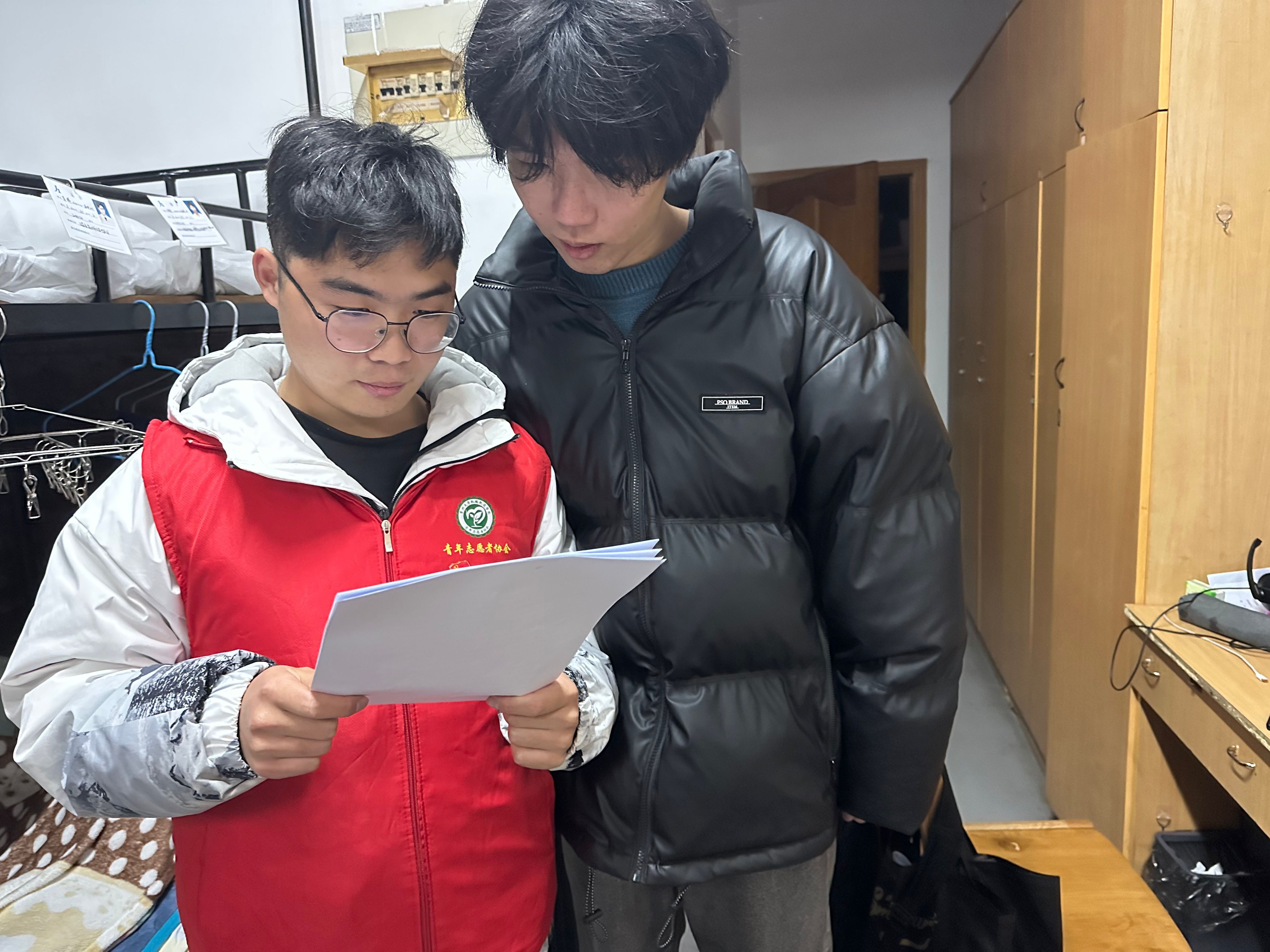 近日,学院学生社区党员工作站联合学生自律中心发布了《诚信考试倡议书》、《宿舍文明公约》,努力提高同学们诚信考试与宿舍安全意识。党员工作站党员和学生自律中心志愿者化身宣传员走进宿舍,开展相关宣讲活动。