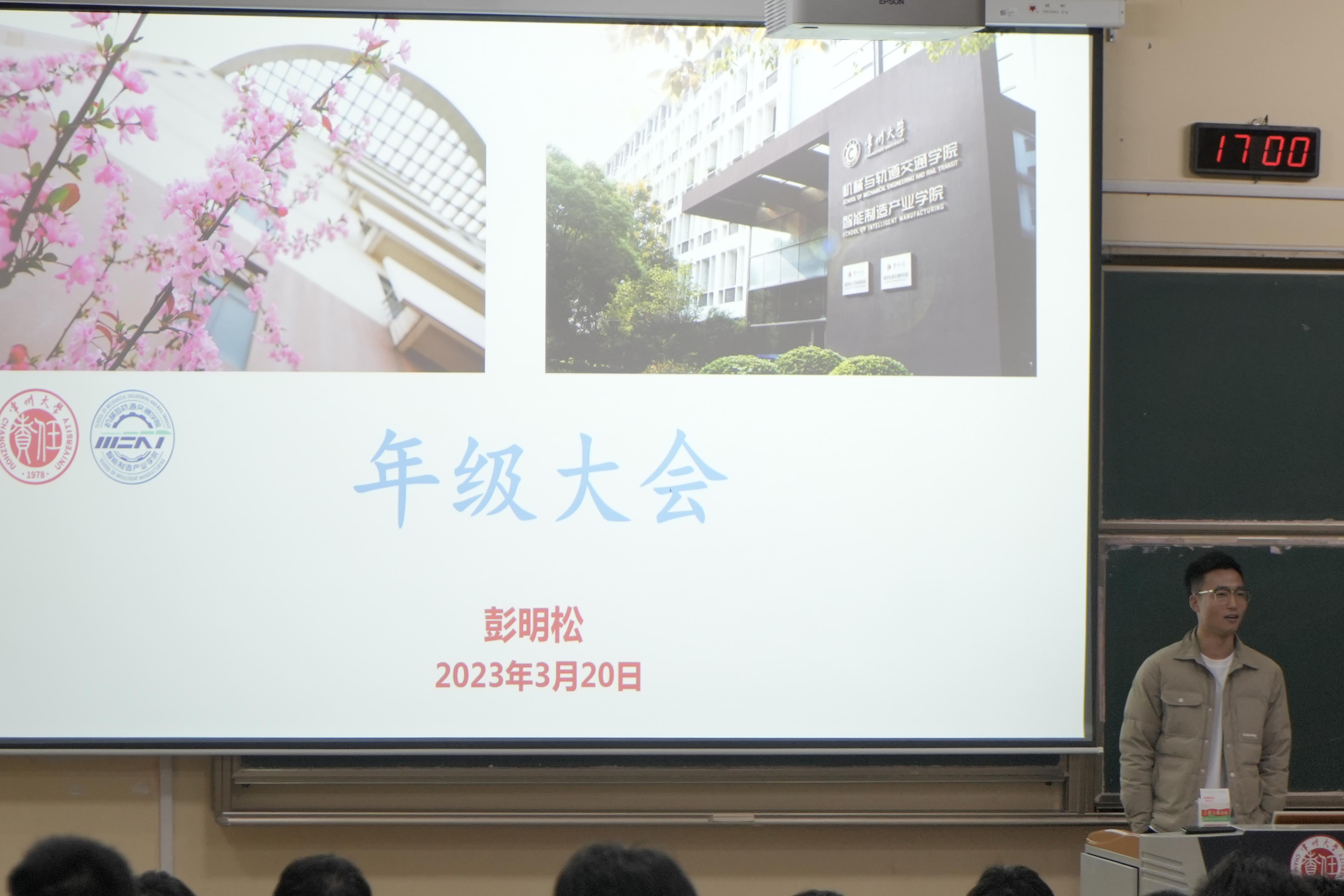 2023年3月20日下午,我院在W8阶梯教室召开了2021级年级大会。辅导员彭明松主持会议,车辆工程、电气工程及其自动化、轨道交通信号与控制、机械电子工程四个专业2021级全体学生参加会议。