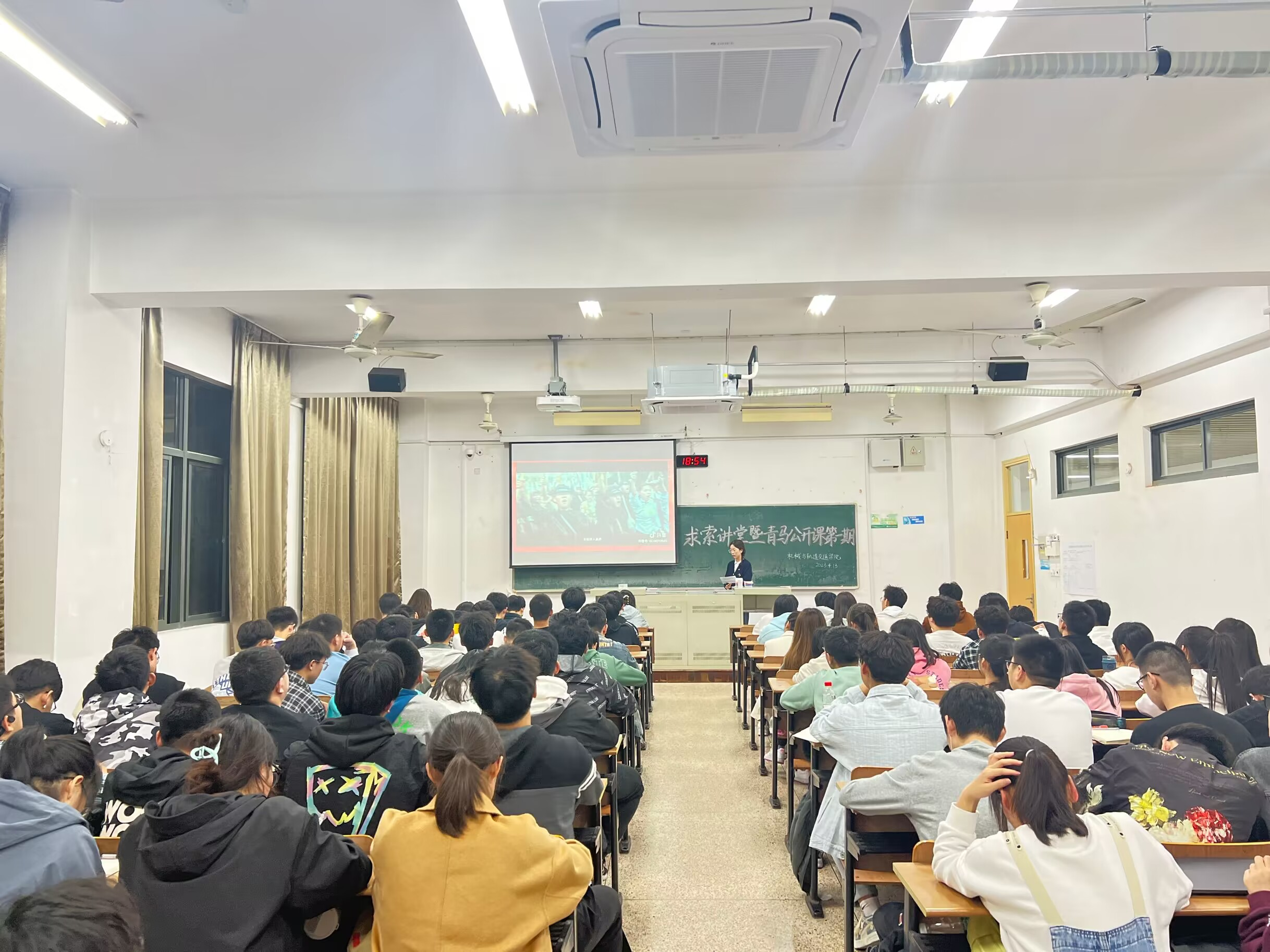 公开课首先由史冰川同学登台演讲,其分享的主题为“贯彻党的二十大报告,全国两会精神”。史冰川同学文笔细腻、条理清晰,将讲话分成“报告内容”、“金句分享”及“总结感悟”三个部分,并着重宣讲了“总结感悟”这一部分,将观众的情绪推向高峰。第二位上场的王君瑶同学通过详细的报告分析向同学们讲解了“什么是五四精神”、“五四运动的历史意义”、“时代赋予当代青年的历史使命”和“我们应该怎么做”,其语气慷慨激昂、其语言宛如平地起惊雷,振聋发聩,使得在场的所有观众连连鼓掌。最后,魏甜甜同学走上讲台,从“坚定理想信念”和“践行初心使命”两个重点方面号召全体同学不忘初心、为祖国复兴而奋斗。会议结束后,同学们有序离场。