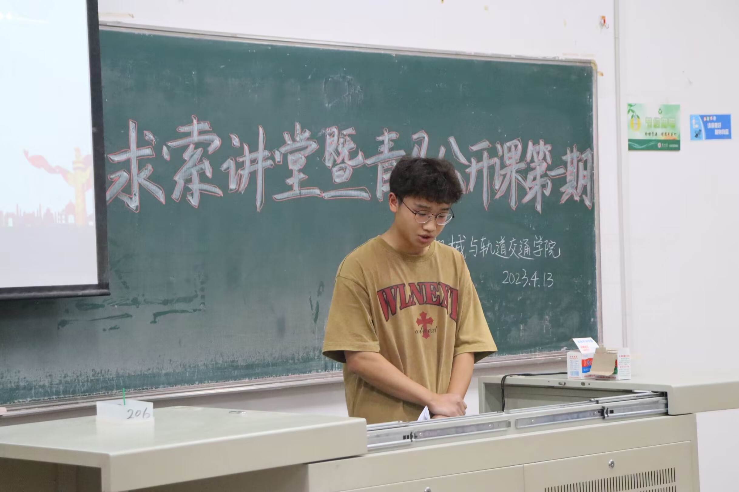 2023年4月13日晚,机械与轨道交通学院 智能制造产业学院团委在W1206组织开展求索讲堂暨青马公开课第一期,“学习二十大 永远跟党走 奋进新征程”主题团课展示。本期共有机制203史冰川、机电211王君瑶和智造202魏甜甜三位优秀的团支书上台分享自己对二十大精神的理解,学院所有团支书参加培训。