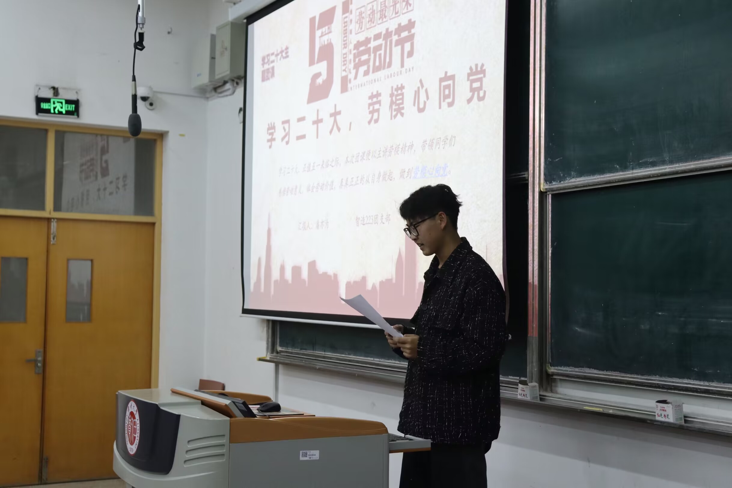 此次团课由智造223团支书潘亦为,装备222团支书唐颢源和成型221团支书田曾贵三位优秀的团支书为大家分享相关主题团课。智造223团支书潘亦为带来了“学习二十大,党模心向党”为主题的团课,带领同学们感悟劳动意义,体会劳动价值。装备222团支书唐颢源带来了“人既发扬踔厉矣,则邦国亦以兴起”为主题的团课,通过讲述百年党史的艰辛历程,新时代成绩斐然,呼吁广大青年要听党话,跟党走,怀抱梦想,脚踏实地,立志做有理想,敢担当,能吃苦,肯奋斗的新时代好青年。成型221团支书田贵曾带来了以“民主”为主题的主题团课,他从我国的建设性成就,张太雷的革命精神和青年的时代担当三个部分呼吁广大青年青春共勉。