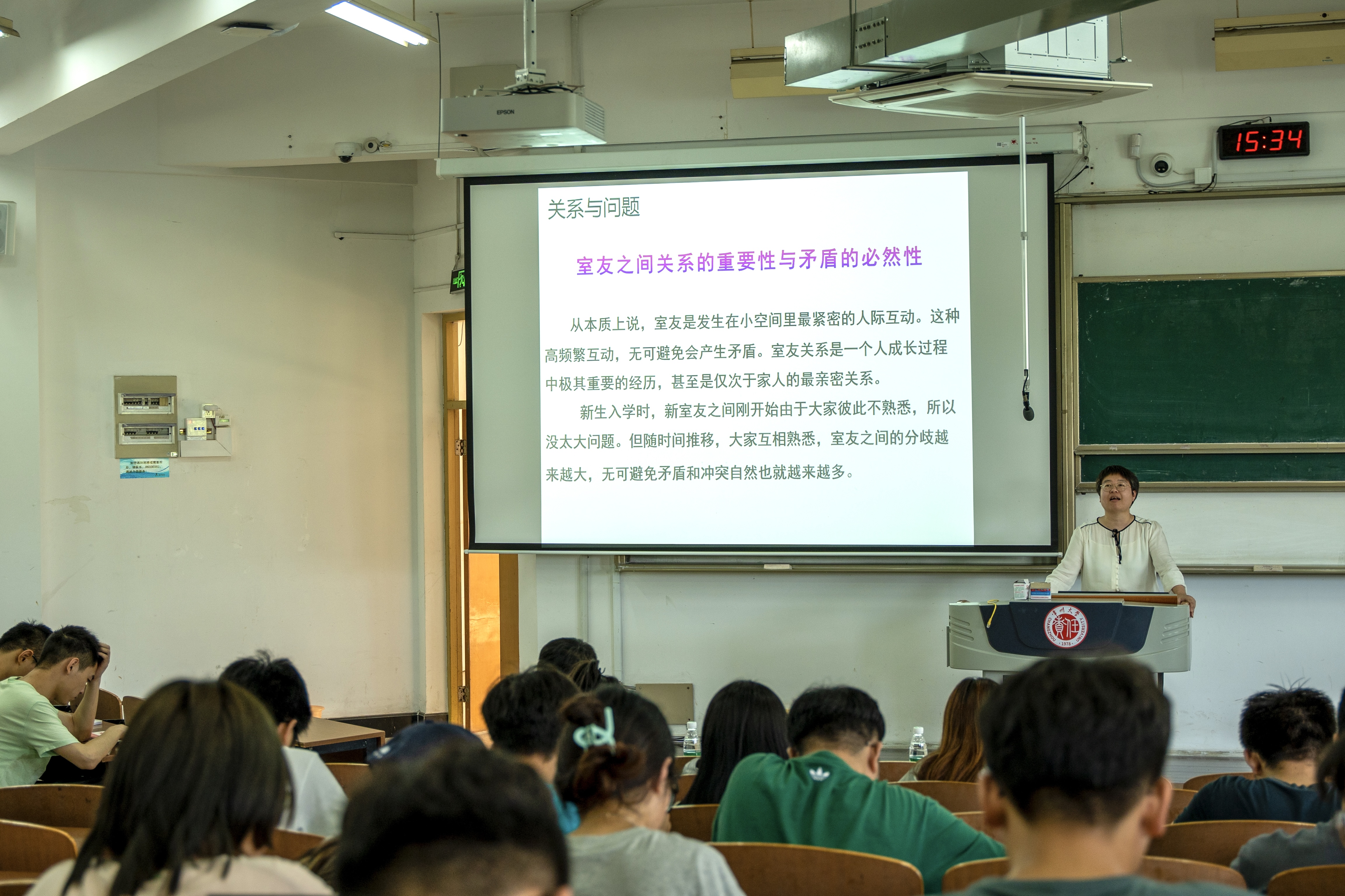 本次活动共评出4个党员示范宿舍,5个学霸宿舍,5个优秀学风示范宿舍,5个卫生标兵宿舍。会上,与会老师为各获奖宿舍颁发获奖门牌。获奖宿舍代表刘佳宁、赵宁鹤介绍了所在宿舍学风文化建设的成效和经验,以及保持宿舍关系和谐相处、相关促进的举措。随后,蔡老师从近年来各高校出现的宿舍人际关系问题的典型案例切入,详细讲述了大学生人际交往的特点与重要性,并提出了许多加强人际沟通的方法和技巧。