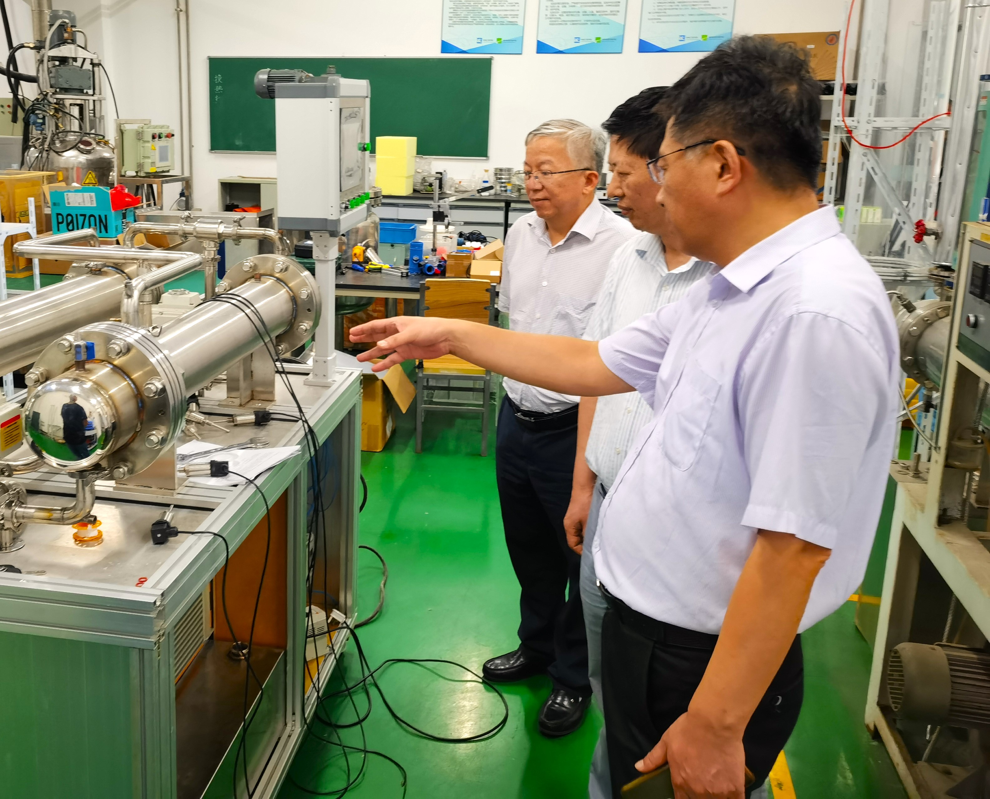 会上,刘雪东对周立进、陶全保一行表示欢迎,介绍了学院的相关研究方向以及研究团队成员。随后,各研究团队围绕流动腐蚀与智能防控、油气生产储运设施腐蚀防护、高性能涂层与缓蚀剂研发、承压设备与管道风险预防-安全评价与失效分析、不锈钢与纯钛复合板腐蚀性能研究、高效节能环保装备技术、锅炉尾气脱硫系统腐蚀一体化防腐等课题进行了汇报。周立进、陶全保结合化工行业背景和中安煤化生产工艺流程特点与专家进行了交流与讨论,希望双方加强合作,促进行业技术联合攻关和科技成果转化。刘雪东对中安联合长期以来对我院科研工作给予的支持表示感谢,希望学院科研团队面向行业发展需求,进一步凝练研究方向,对本次交流会所形成的双方都关心的研究课题,会后要进一步对接与落实。会前,周立进一行参观了学院机械工程实验中心,以及相关科研团队实验室。