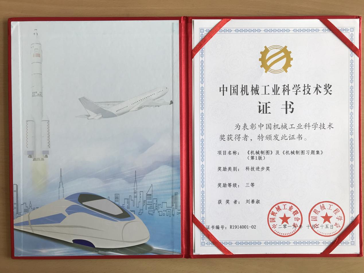 2018年,《机械制图》及《机械制图习题集》(第1版)获中国机械工业科学技术进步三等奖。