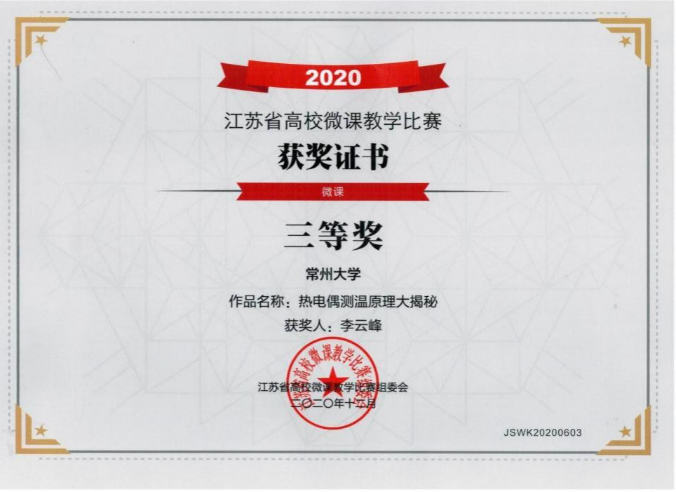 李云峰老师获江苏省高校微课教学比赛三等奖;