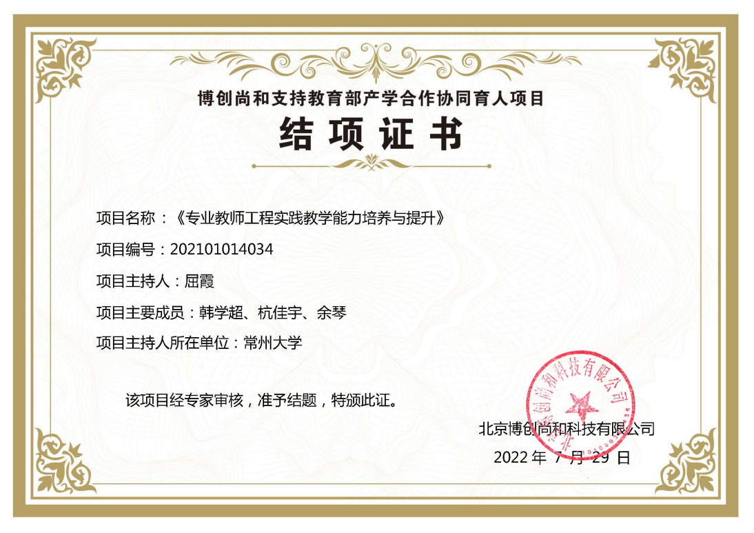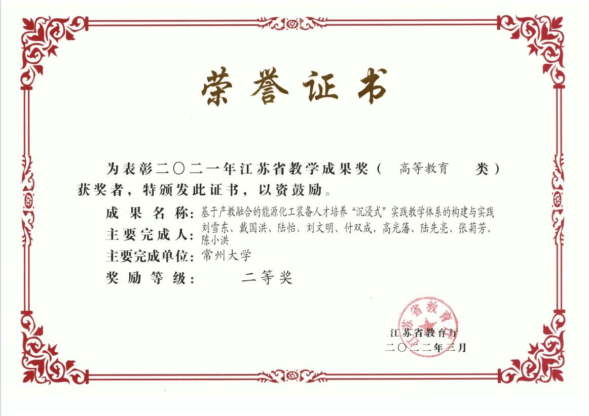 《过程装备与控制工程专业实验》,2019年获得立项(苏高教会[2019]23号);