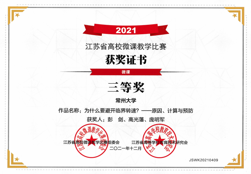 彭剑老师获江苏省高校微课教学比赛三等奖;