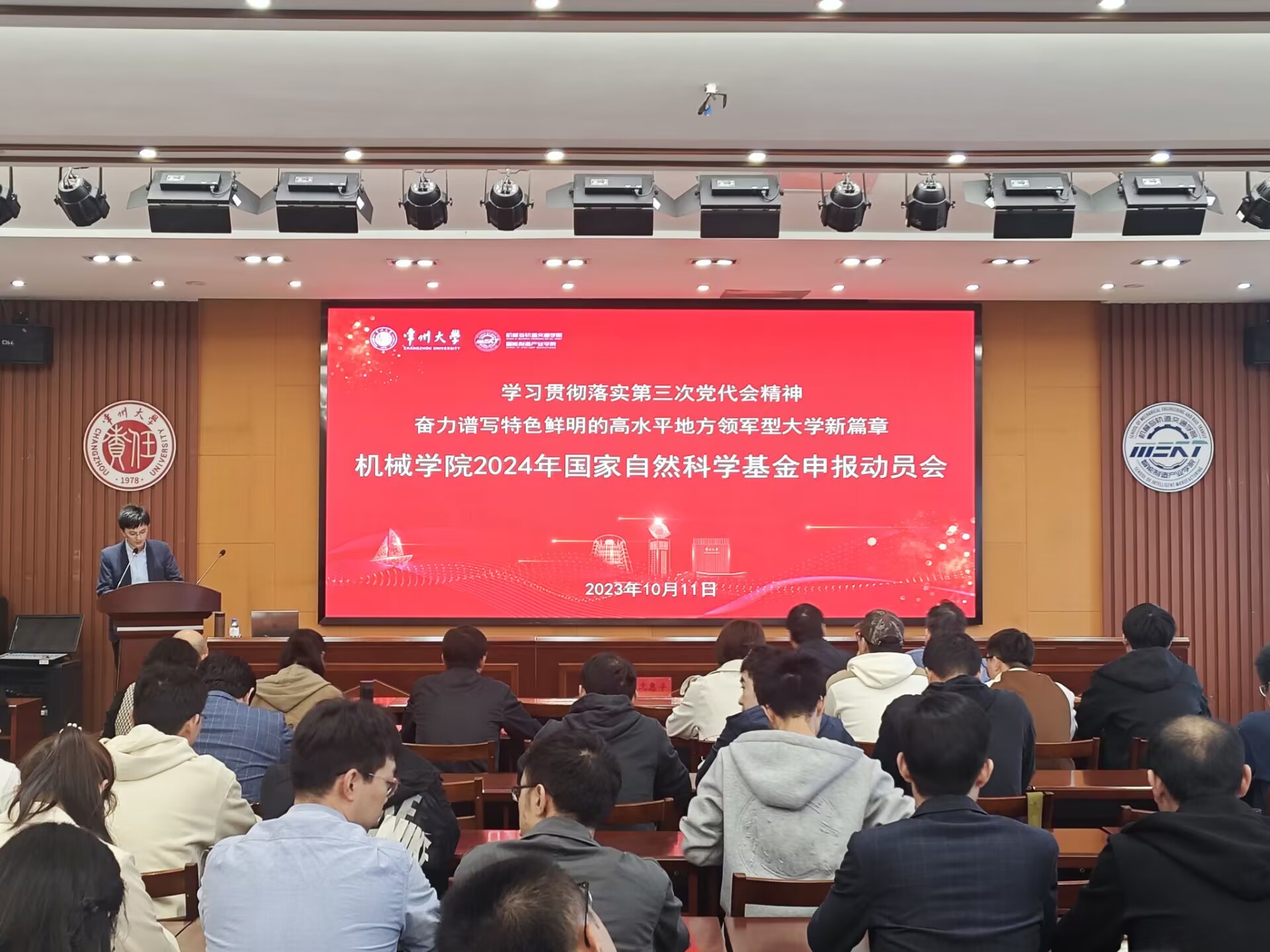 10月11日,机械与轨道交通学院 智能制造产业学院在乐行楼报告厅召开大会,传达学习校第三次党代会精神,并进行2024年国家自然科学基金申报动员和辅导。党委书记袁志华传达党代会精神,院长刘雪东进行2023自科基金情况总结并做2024自科基金申报动员,享国务院政府特殊津贴、拥有主持国家自科基金项目4项、省自科基金2项经历的沈惠平教授做辅导报告。各科研团队骨干、全体青年教师以及教师代表参加会议。院长助理彭剑主持会议。