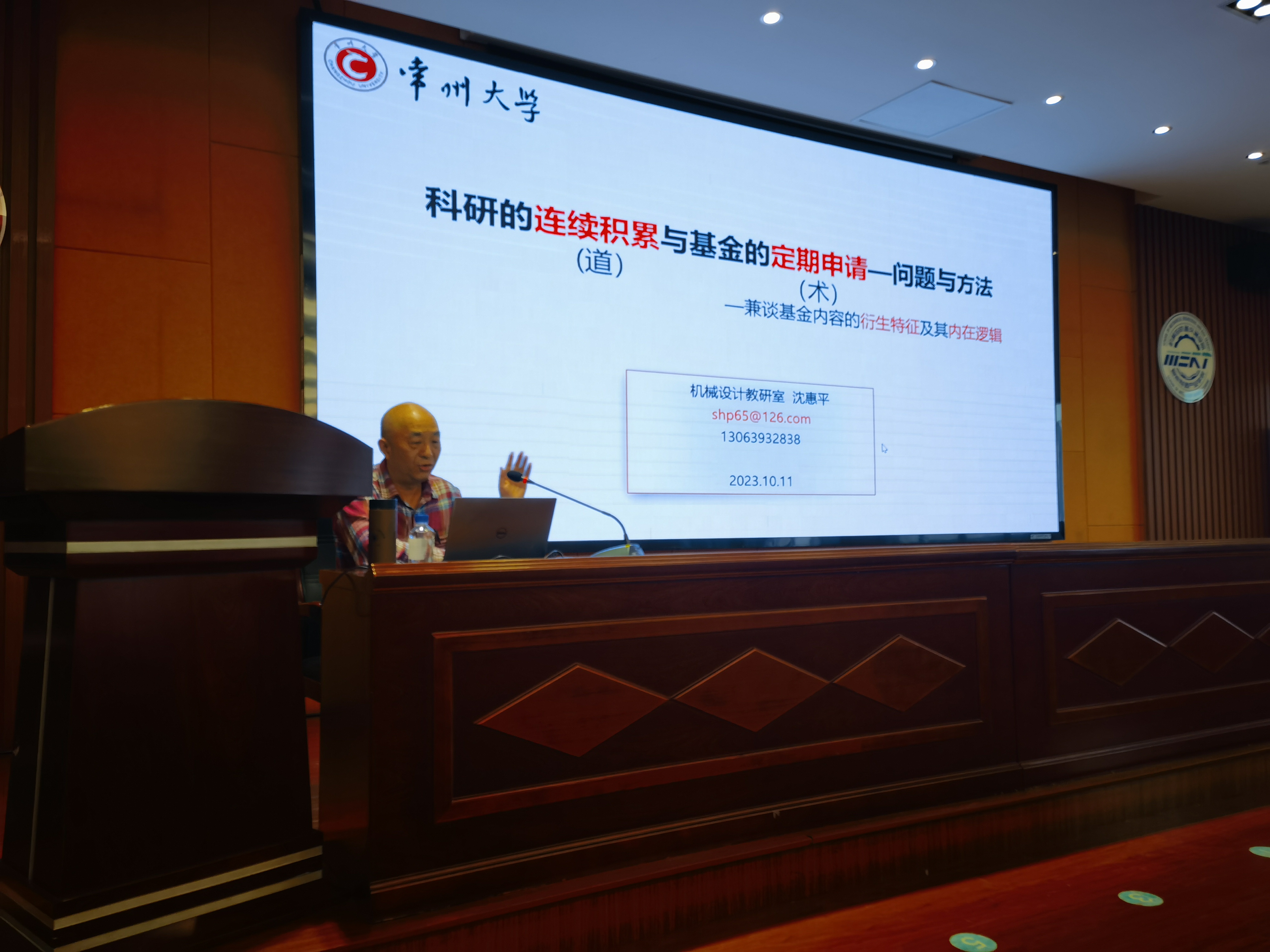 沈惠平结合自身多年的科研经验和基金申报心得,作了题为《科研的长期积累与基金的定期申报》的学术辅导报告。他从国家自然科学基金申报的“道”与“术”、新方法与新问题的产生等方面进行讲解,从标题、立项依据、研究内容、研究目标等各个方面对填写要求、写作方法和注意事项进行了精彩解读,最后就如何做好科研项目、积淀科研成果、形成科研体系为大家提供了典型范例。