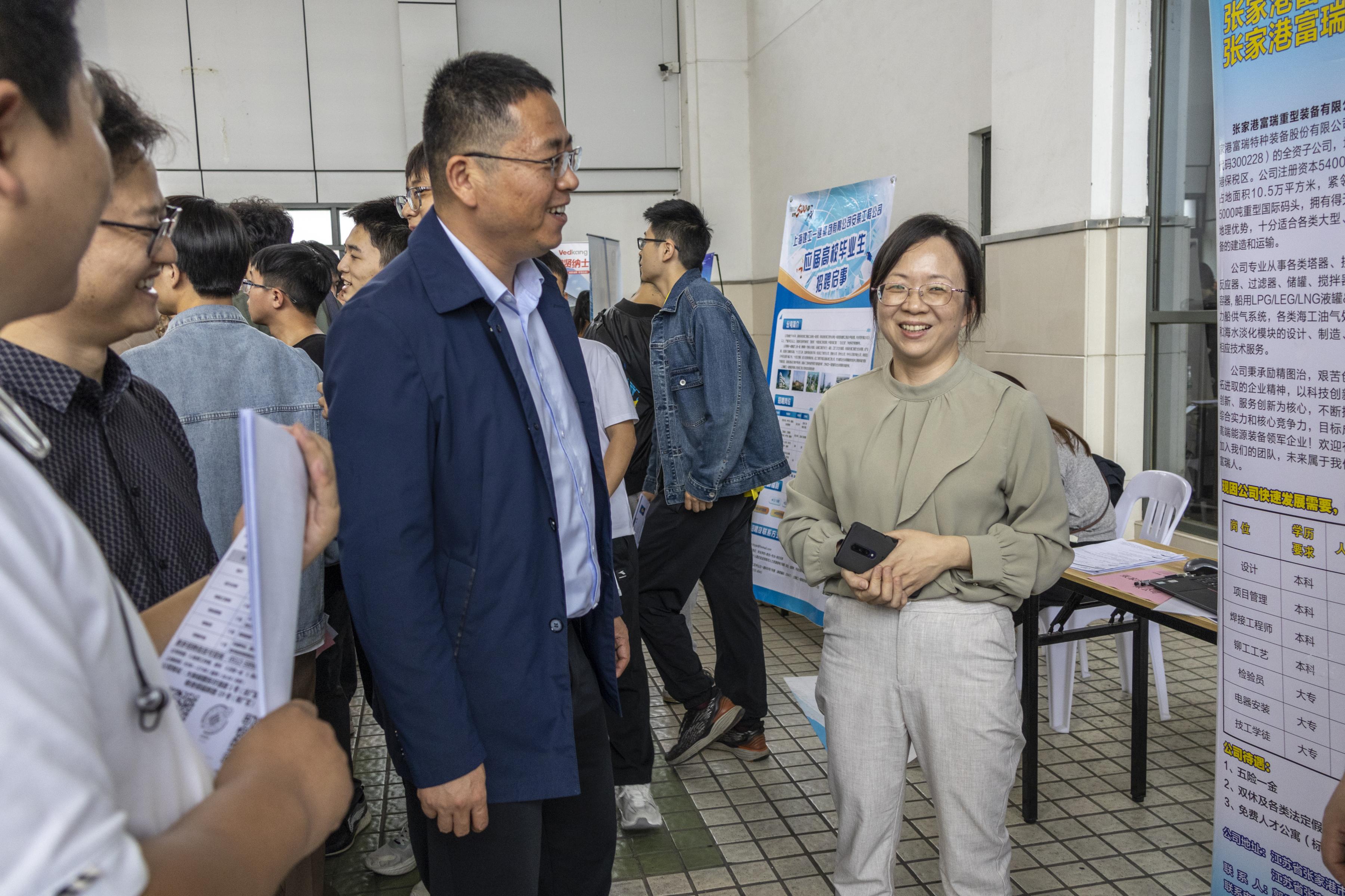 为落实党中央、国务院“稳就业”、“保就业”决策部署,抢抓秋季开学后促就业工作关键期,促进人才供需对接,服务毕业生就业,10月25日下午,学院在常州大学科教城校区教学主楼二楼平台顺利举办了“江苏省‘百校联动’暨常州大学2024届毕业生公益招聘会——机械、电气类专场”公益招聘活动。常州大学学工处副处长龙涌澜、院党委副书记葛涛深入现场,与用人单位及毕业生进行亲切交流,了解企业招聘需求及毕业生求职情况,学院毕业班辅导员带队现场指导学生求职择业。