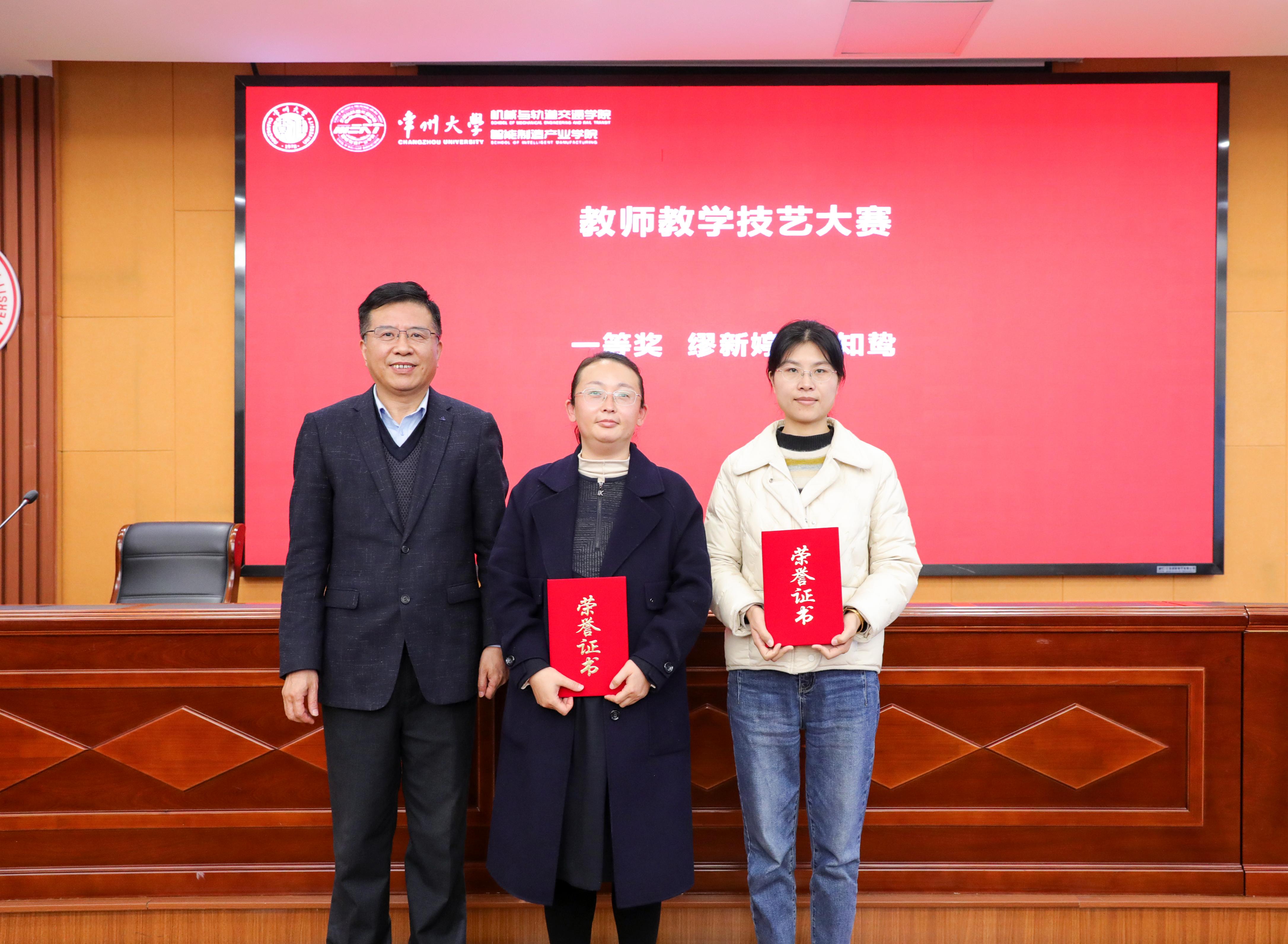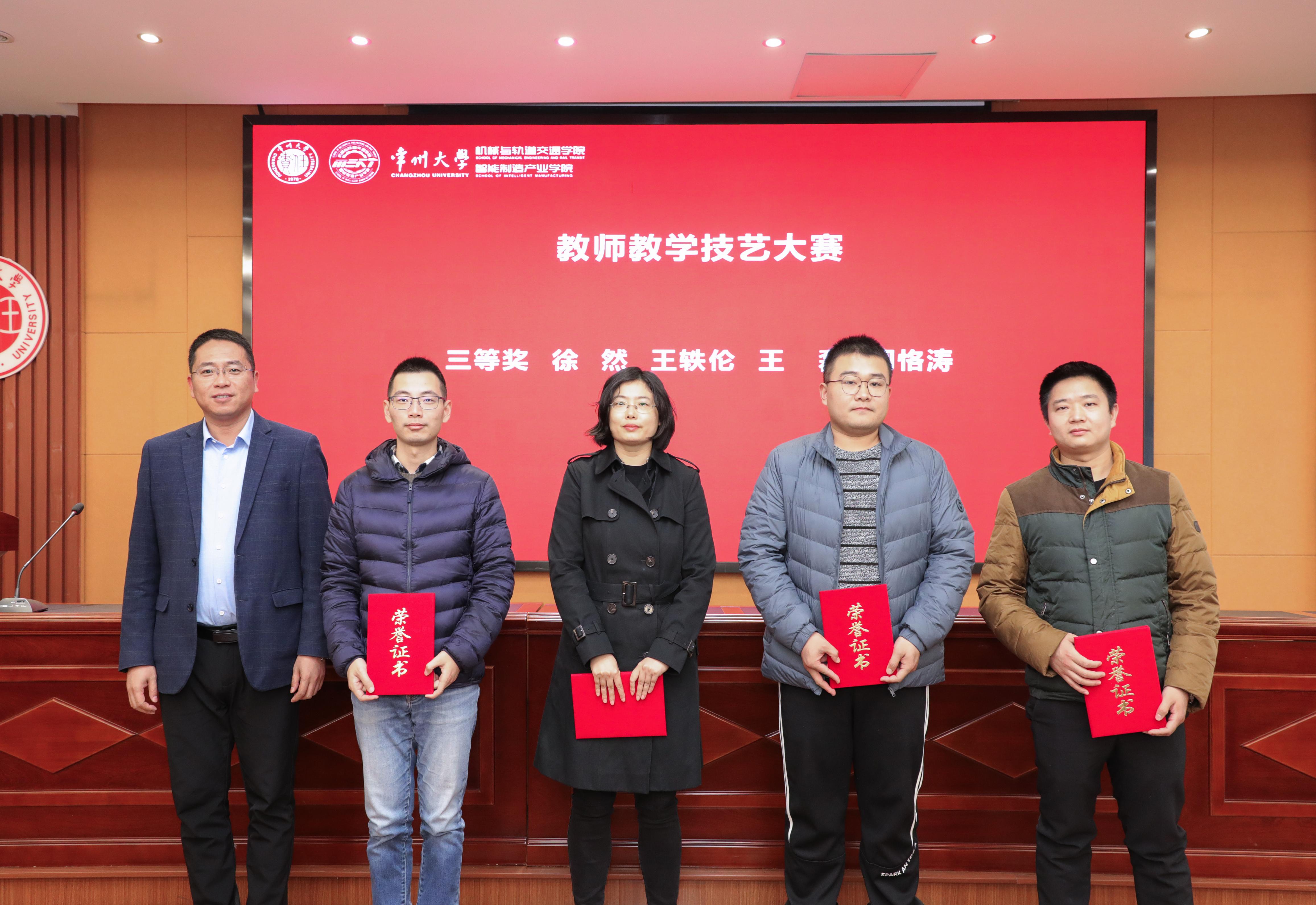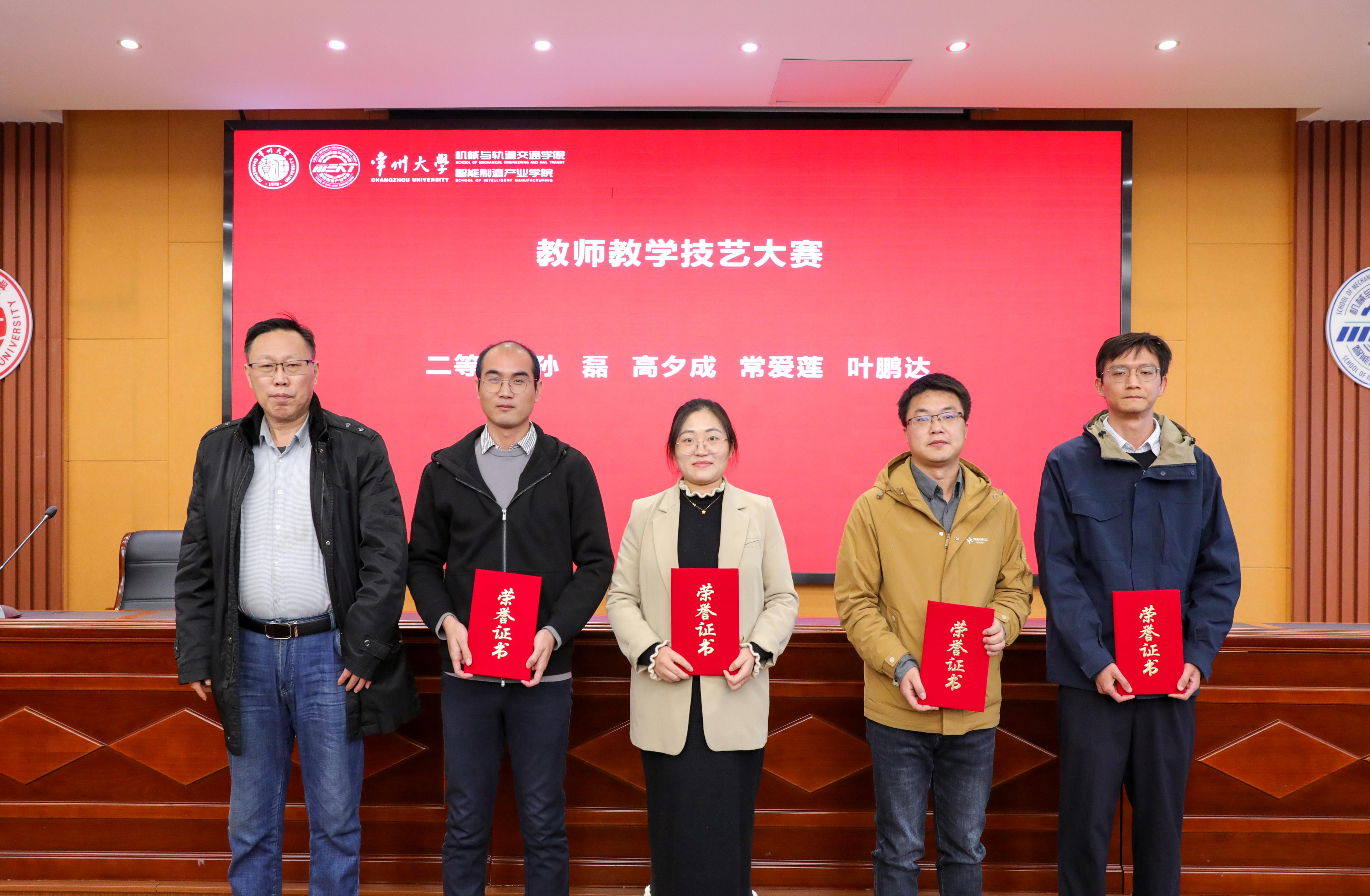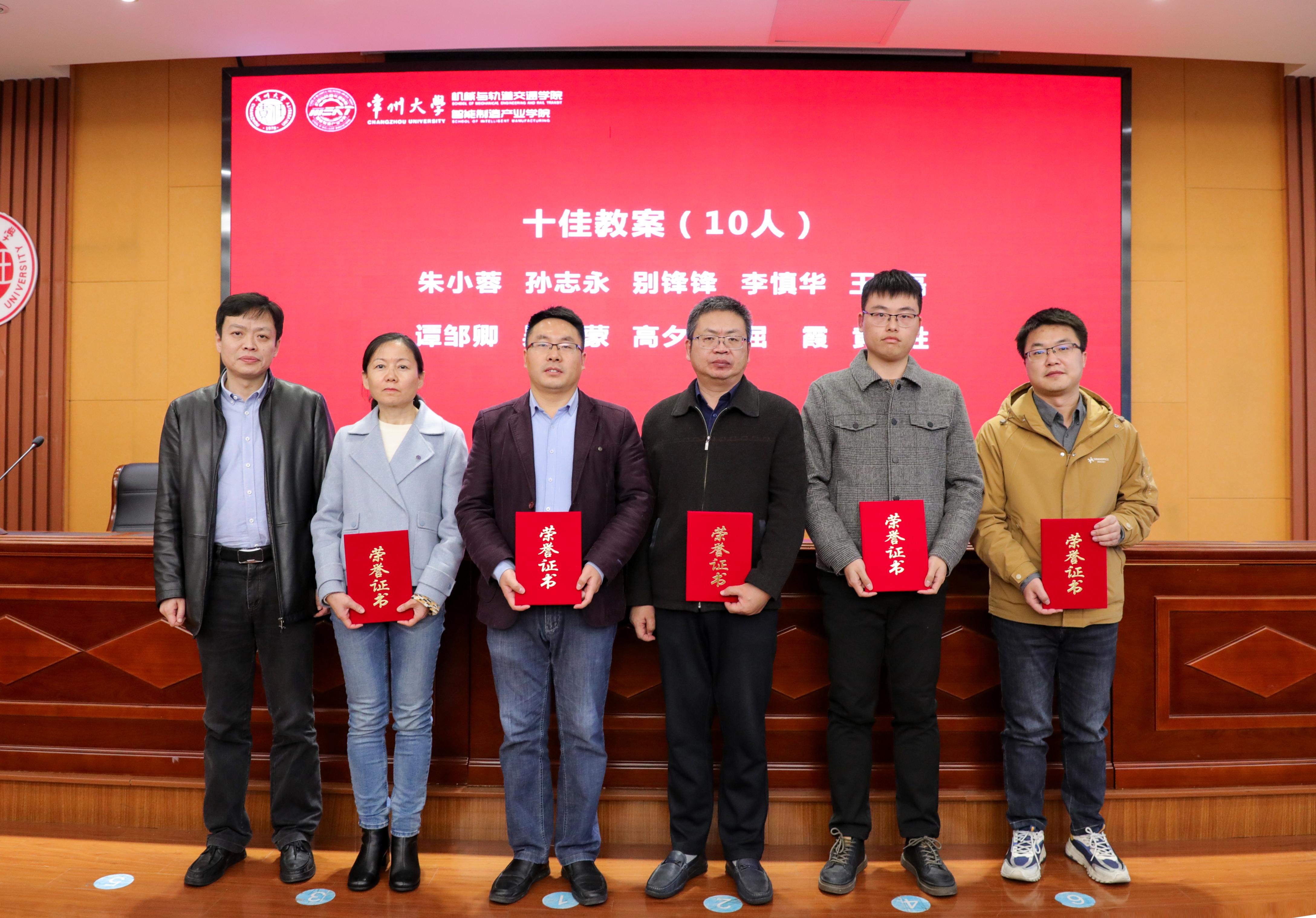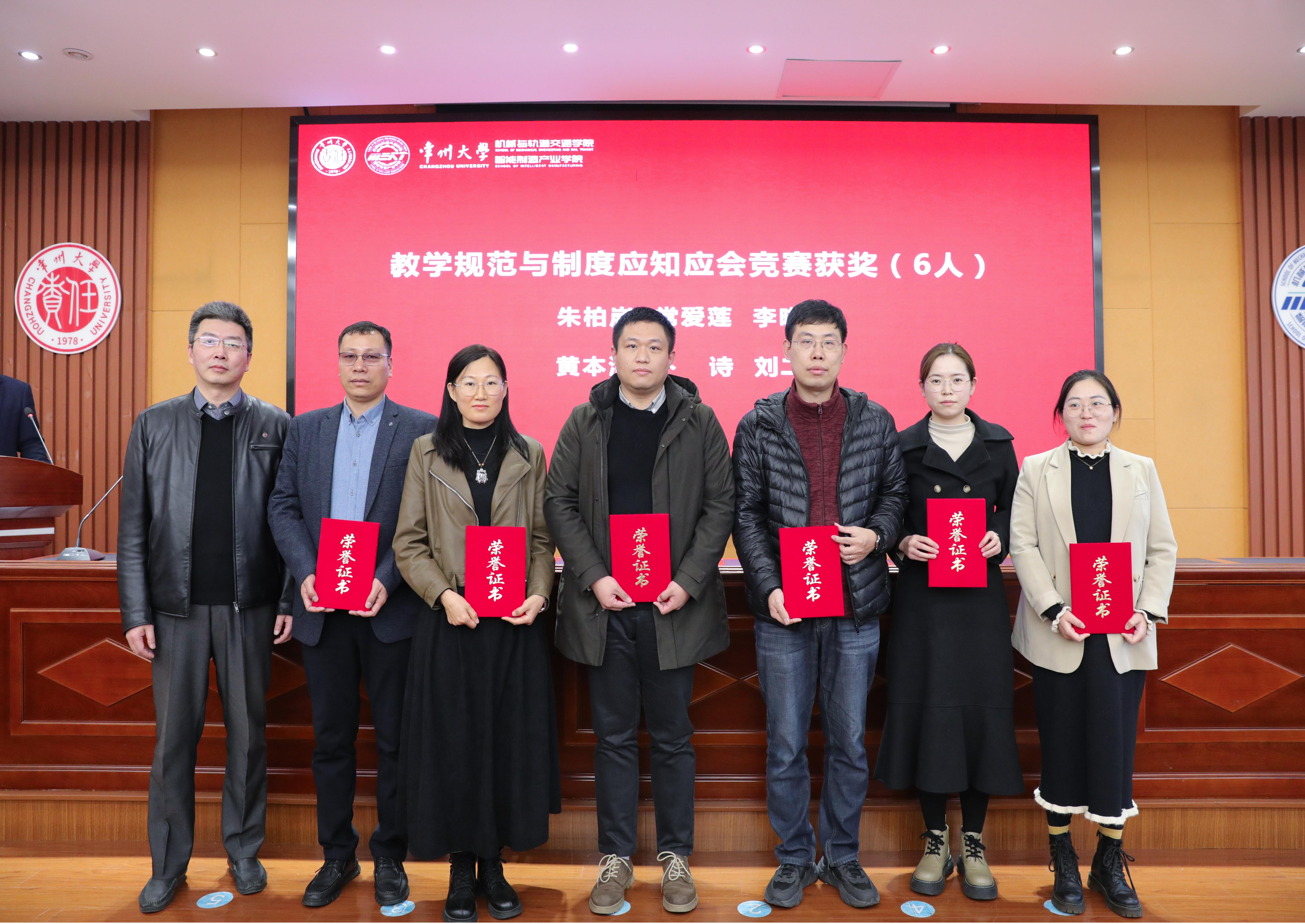 莫琦、柳铭、学院党政领导依次为教学技艺大赛、优秀教案评选、教学规章制度应知应会竞赛获奖教师颁奖并合影留念。