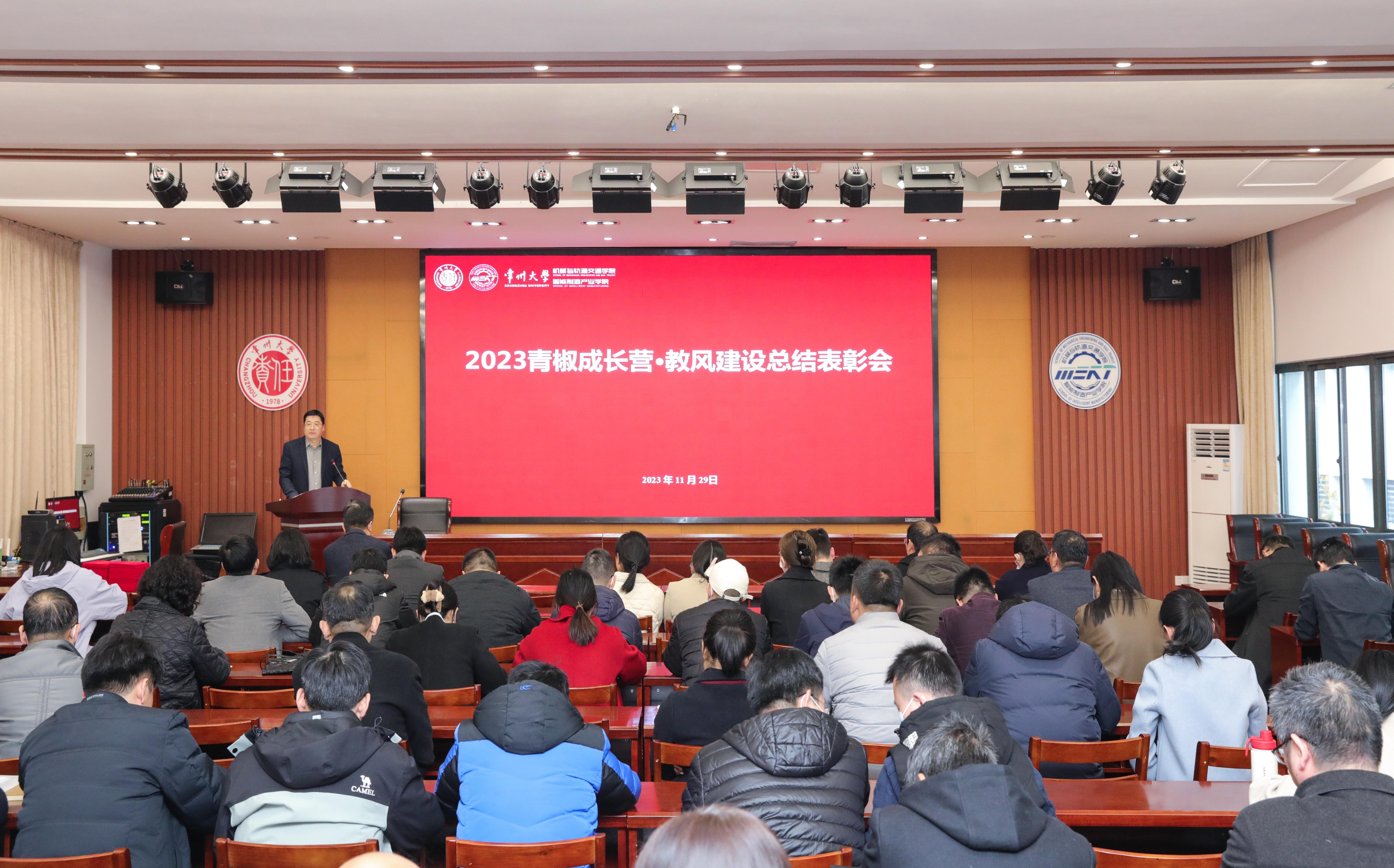 11月29日,学院在乐行楼243报告厅举办“2023青椒成长营·教风建设”总结表彰会。教务处处长莫琦、研工部部长柳铭出席活动。党委书记袁志华主持大会。党政班子、全体专任教师参加大会。
