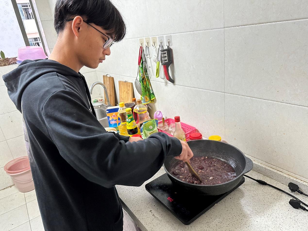 活动开始,留学生辅导员曹钰介绍了中国传统节日腊八节的由来、典故和民间习俗,展示了腊八粥的原料及做法。接着,留学生们将提前准备好的糯米、花生、红豆、莲子等食材洗净,倒入锅内,不断搅动,精心熬制腊八粥。经过两个小时的熬制,腊八粥终于出锅,空气四周弥漫着香甜的味道。温暖香醇的腊八粥驱散了冬日的寒意,留学生们品尝着亲手制作的腊八粥,感受到了中华传统节日的氛围。