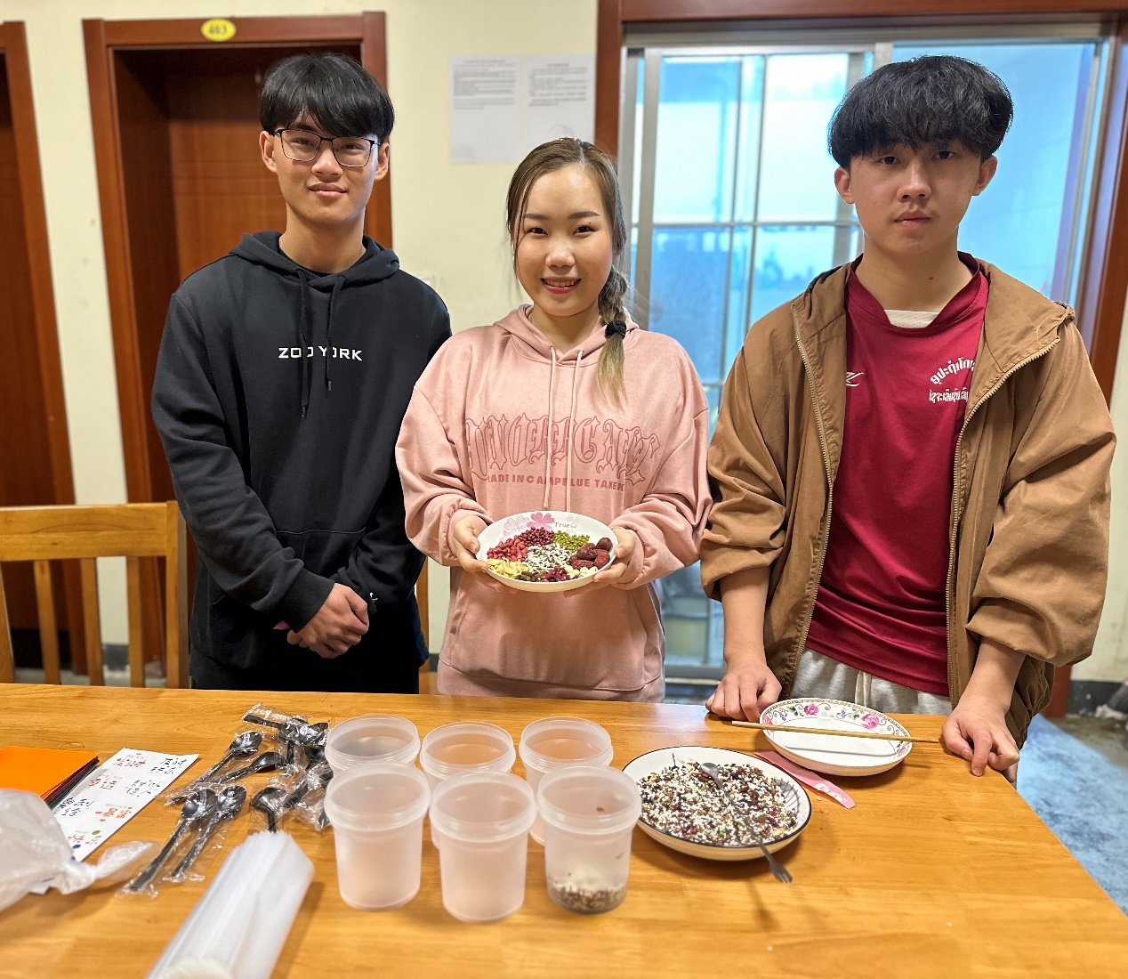 1月18日,时值农历腊月初八,是中国传统节日腊八节。为丰富学院留校留学生的寒假生活,加深来华留学生对中国传统文化的了解与喜爱,学院于武进校区7号楼宿舍组织寒假留校留学生开展腊八节民俗体验活动。