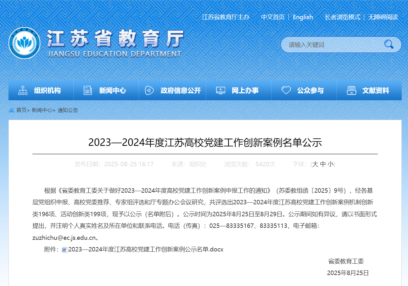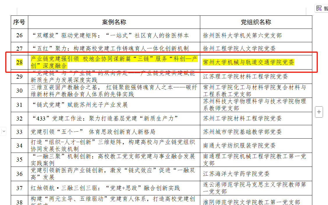 近日,省委教育工委公布了2023—2024年度江苏高校党建工作创新案例名单。我院报送的《产业链党建强引领 校地企协同谋新篇“三链”服务“科创—产创”深度融合》获机制创新类三等次。