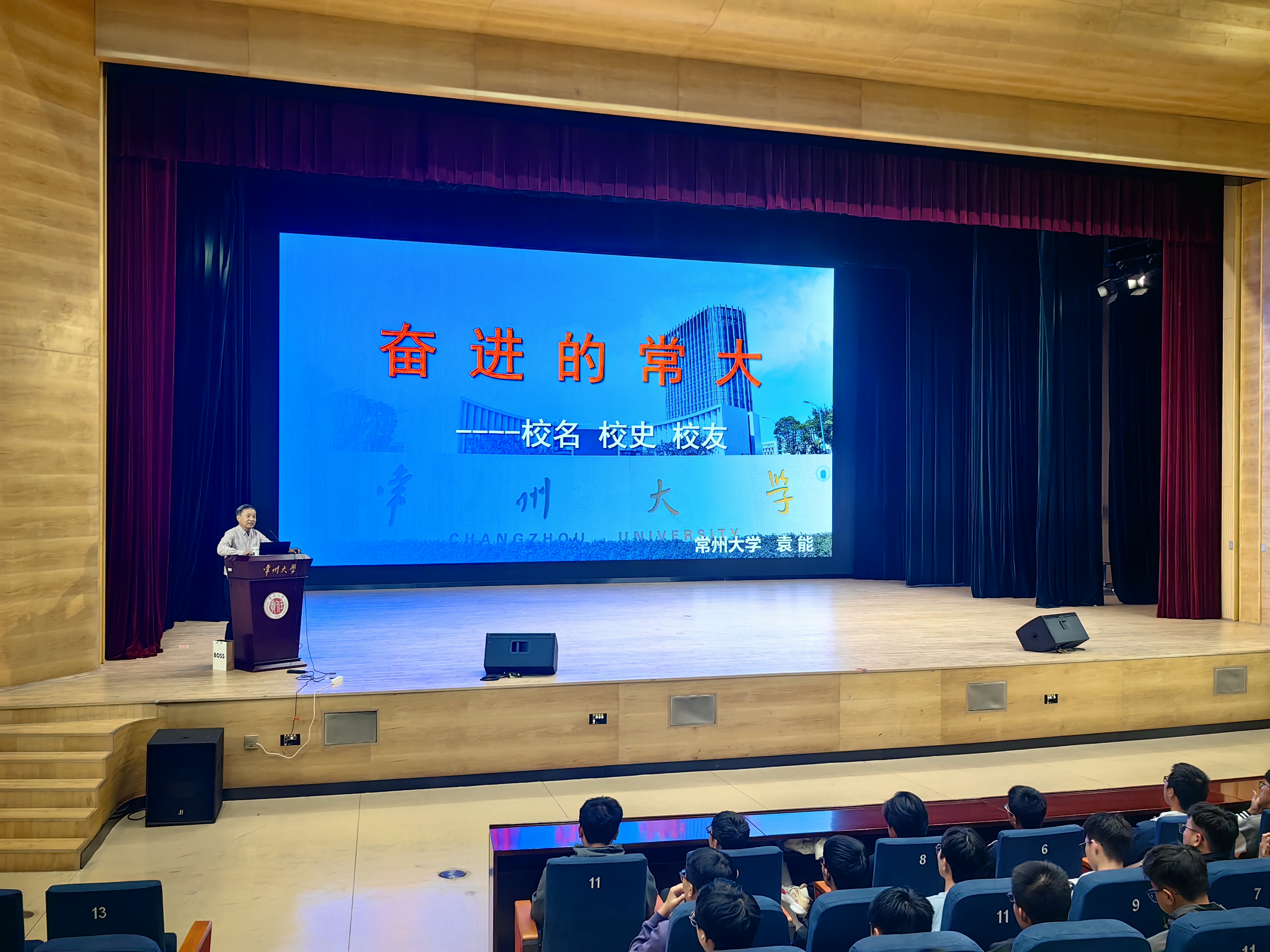 校关工委副主任袁能1978年进入南京化工学院常州分院(常州大学前身)基本有机合成专业学习,系我校首届学生,毕业留校后曾担多个部门领导职务,2019年退休。袁老师经历学校不同发展时期,见证了学校重要发展时刻,是常州大学的“活字典”。讲座中,袁老师从学校的创立背景、发展沿革、校区建设方面带领同学们回顾了学校从初创时期的艰难起步到如今的蓬勃发展所走过的风雨历程,全面阐述学校四十七年薪火相传,历经几代常大人的奋力拼搏。也亲切的讲述了自己及知名校友与常大的故事。袁老师指出,正是有一代又一代常大人踔厉奋发,艰苦奋斗,才有了如今常大的成就,前辈们用行动深刻诠释了常大“责任”校训精神。希望同学们继续发扬常大“追求卓越勇担责任”的校园精神,不断奋进,追求卓越,谱写未来新华章。