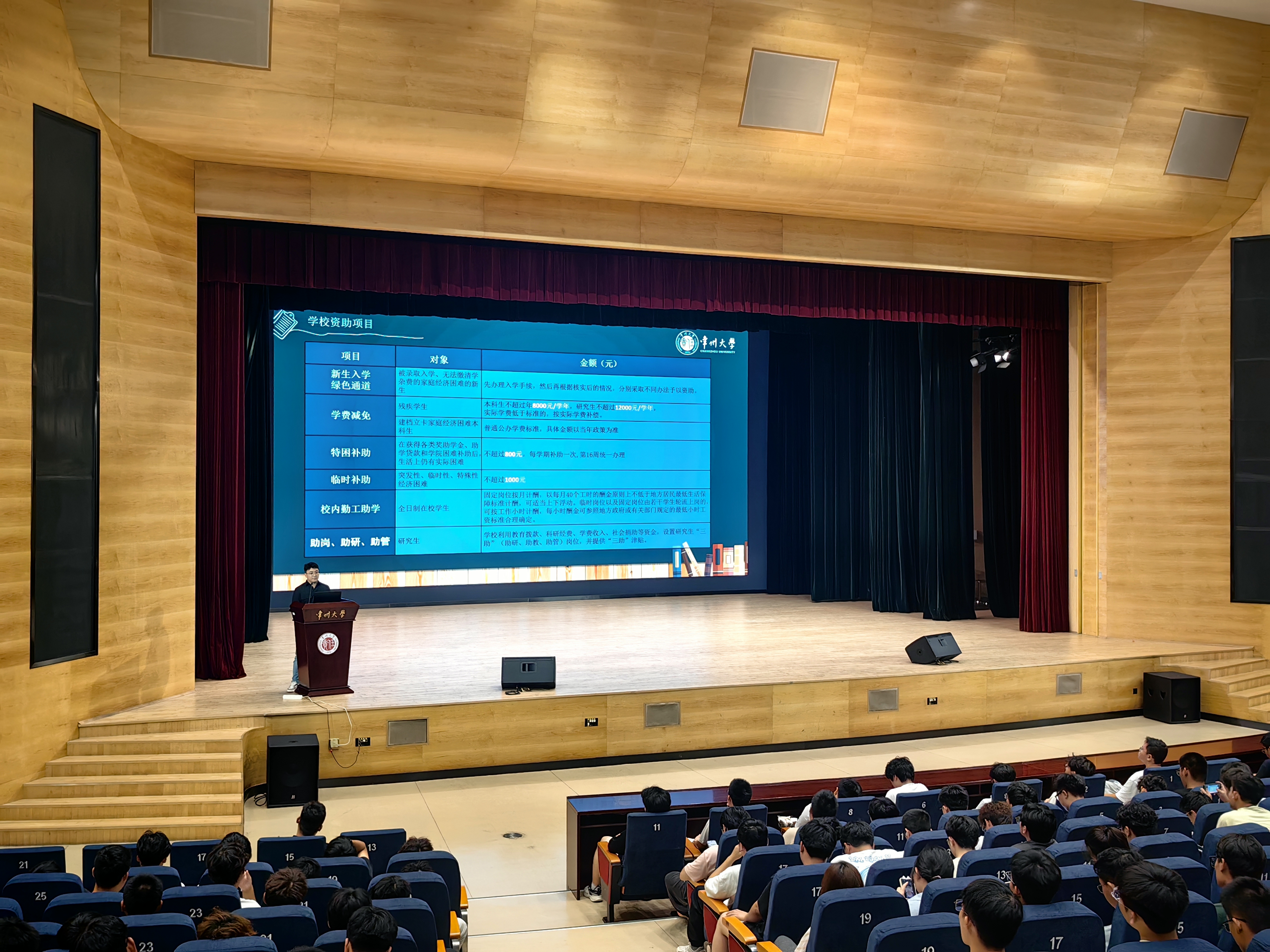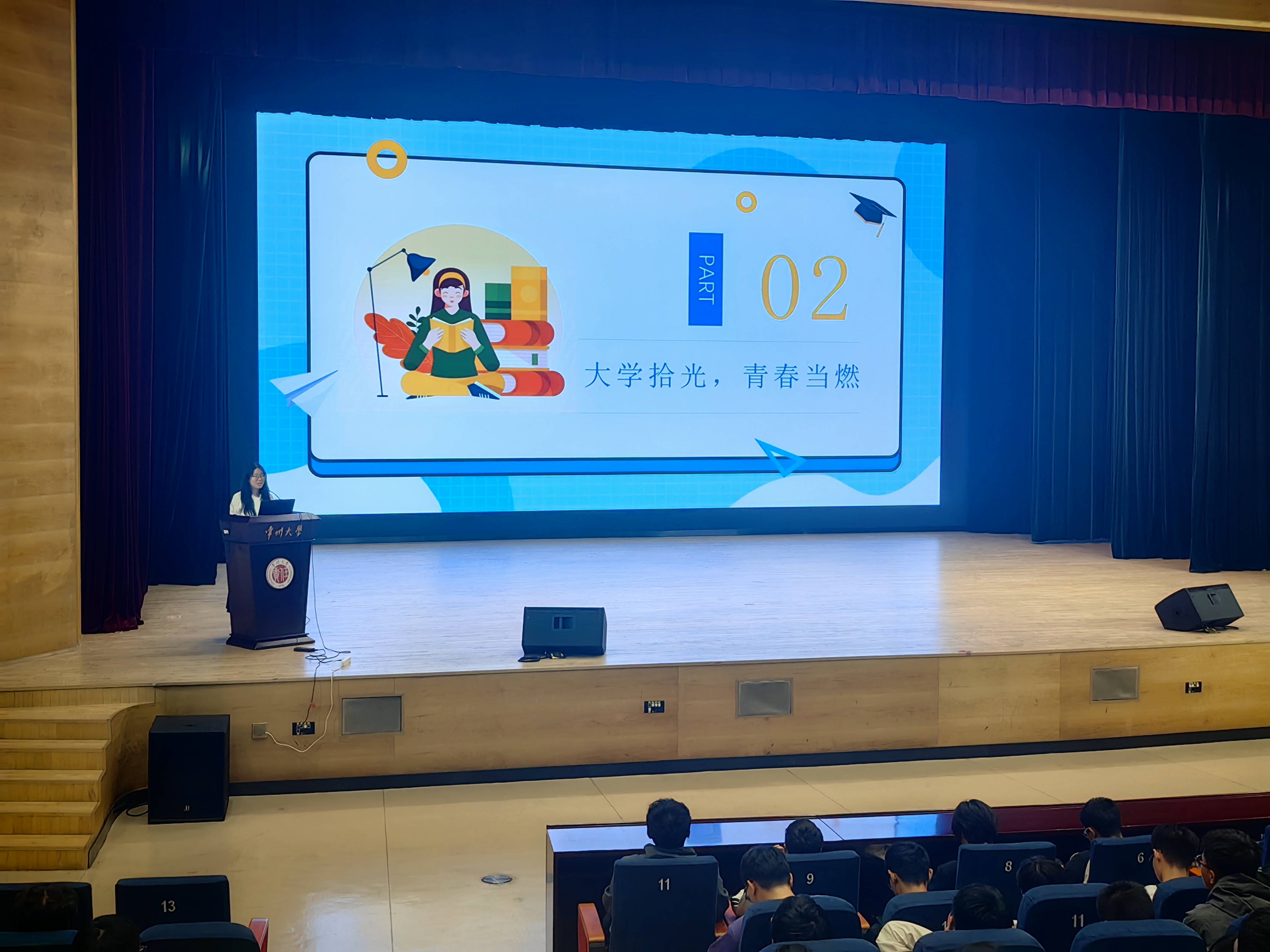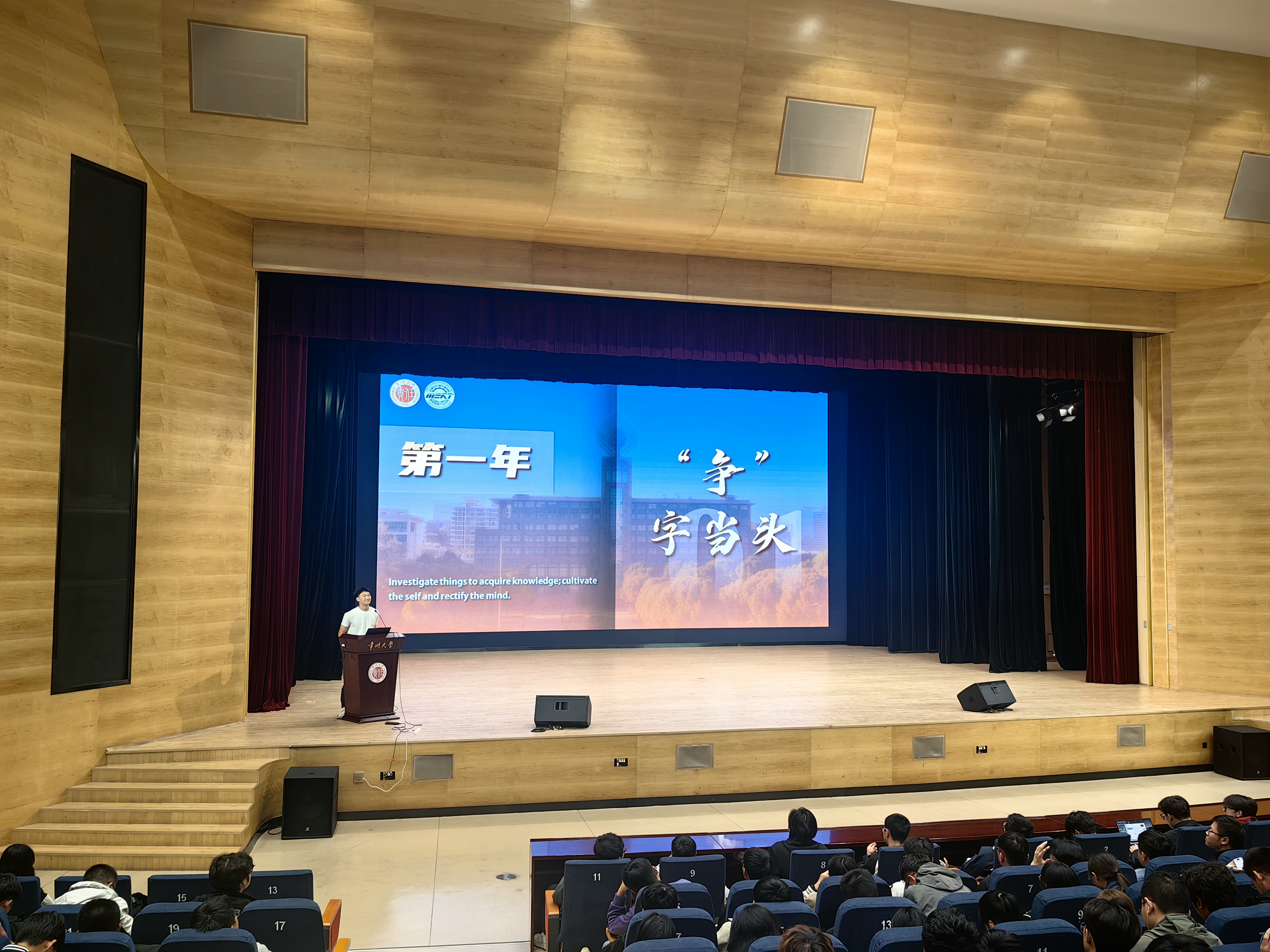辅导员董译文详细解读了学院学业综合测评评价方案,结合自身学习经历,开展了职业生涯教育,引导新生们要夯实学业基础、做好职业规划、树立科学合理的就业观。辅导员张明来讲解党的基本知识与入党意义,说明入党条件、流程及注意事项,鼓励新生树立信念,以实际行动向党组织靠拢。学院教务秘书王心琰详细介绍了培养方案、教务选课、考务等相关知识,现场演示选课系统操作,并解答了相关同学的疑问。彭明松介绍了学科竞赛类型与价值,讲解备赛方法、资源获取及注意事项,分享经验,鼓励新生结合专业积极参与,介绍学院团委职能与组织架构,说明核心工作及活动,讲解入团入党事宜与成长收获,鼓励新生积极参与服务。优秀学生代表翟锦阳、张贺荣、冯天蕴分享大学学习方法与规划经验,谈及竞赛、社团和实践等成长收获,给出避坑建议,鼓励新生把握时光、勇毅前行。