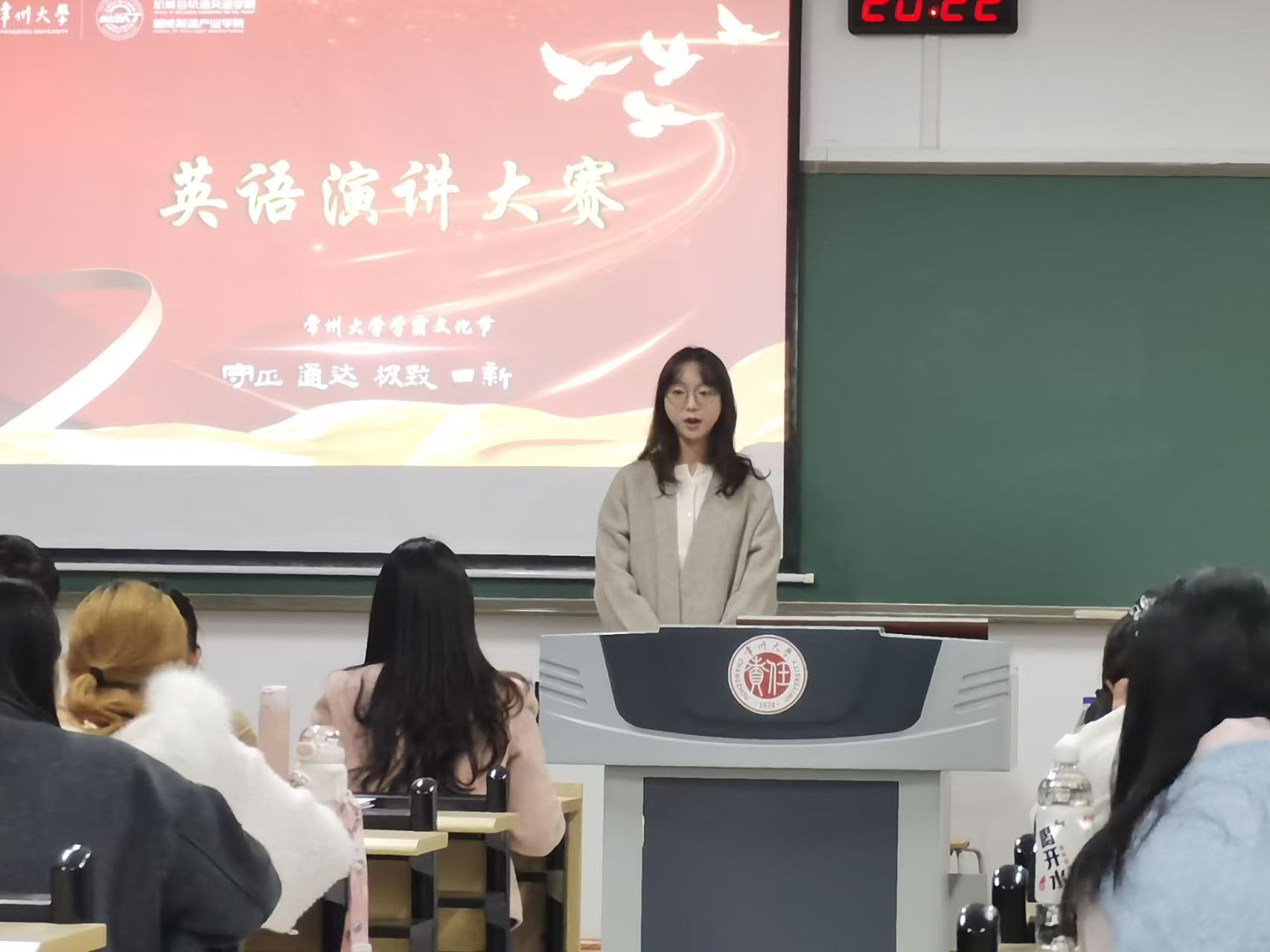 11月11日晚,学院“英语演讲比赛”在西太湖校区立德楼105顺利展开。比赛邀请了大数据学院留学生辅导员许文婕、城市建设学院辅导员张争、机械学院辅导员彭明松、外国语学院英语笔译向研究生吉婷婷、外国语学院英语笔译方向研究生桑成杰担任评委。活动由学生会文艺部阙子然主持,学生会组织部、文艺部其他部长成员全程参与活动。
