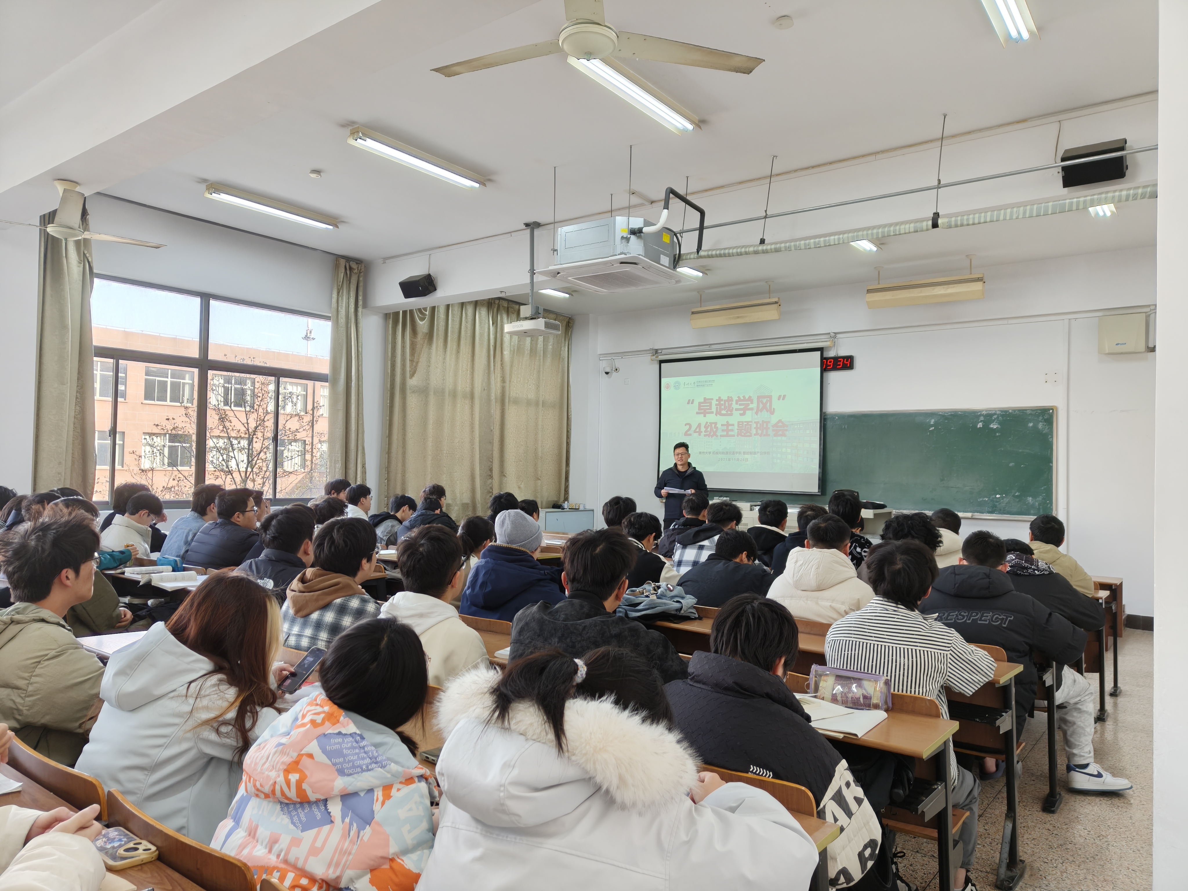 主题班会上,辅导员张明来首先阐述了卓越学风的内涵及建设学风的重要意义,开展了学业生涯规划,升学就业指导,考试诚信,违纪案例等重点内容教育,培训内容引发同学们的深刻思考。活动期间,各班级围绕“如何在学习中践行卓越学风”展开热烈讨论,大家纷纷结合自身实际,分享学习经验与方法,提出要制定科学合理的学习计划、积极参与课堂互动、主动向老师和同学请教问题等。接着,学习委员宣读了班级学风建设倡议书,倡导同学们树立明确学习目标,端正学习态度,互相监督、共同进步。最后,班主任进行总结发言,鼓励同学们以此次班会为契机,将学风建设落实到日常行动中,努力成为优良学风的践行者和传播者。