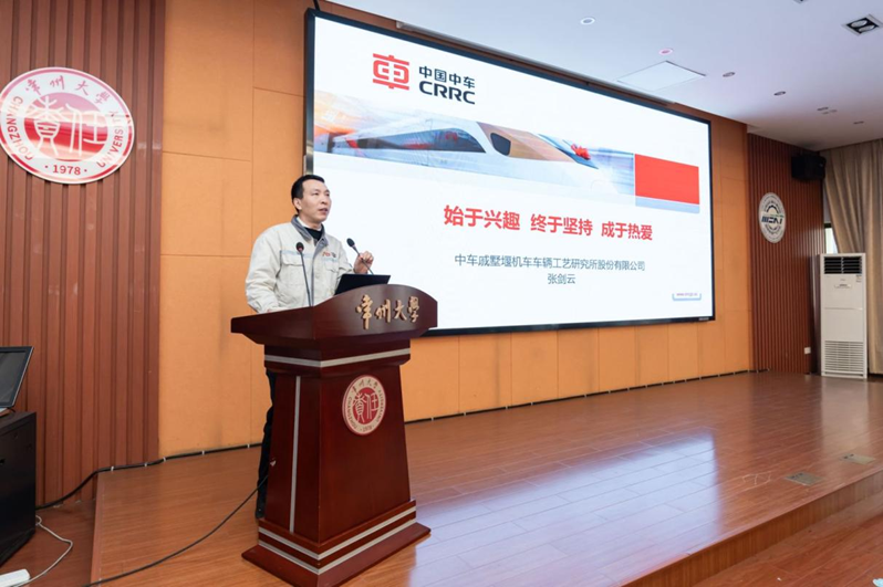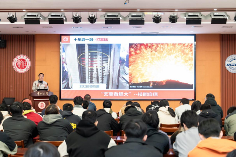 为深植新工科基因、涵养工匠精神,引导学子树立实干职业观,学院于2025年11月27日上午在乐行楼243报告厅举办求索讲堂活动,特邀中车戚墅堰机车车辆工艺研究所股份有限公司金属材料技术研发中心科试班班长、铸造高级技师、高级工程师、全国劳动模范、大国工匠、全国五一劳动奖章、中央企业优秀共产党员、中车首席技能专家张剑云,以26载铸造生涯为学子带来“始于兴趣,终于坚持,成于热爱”主题讲座。