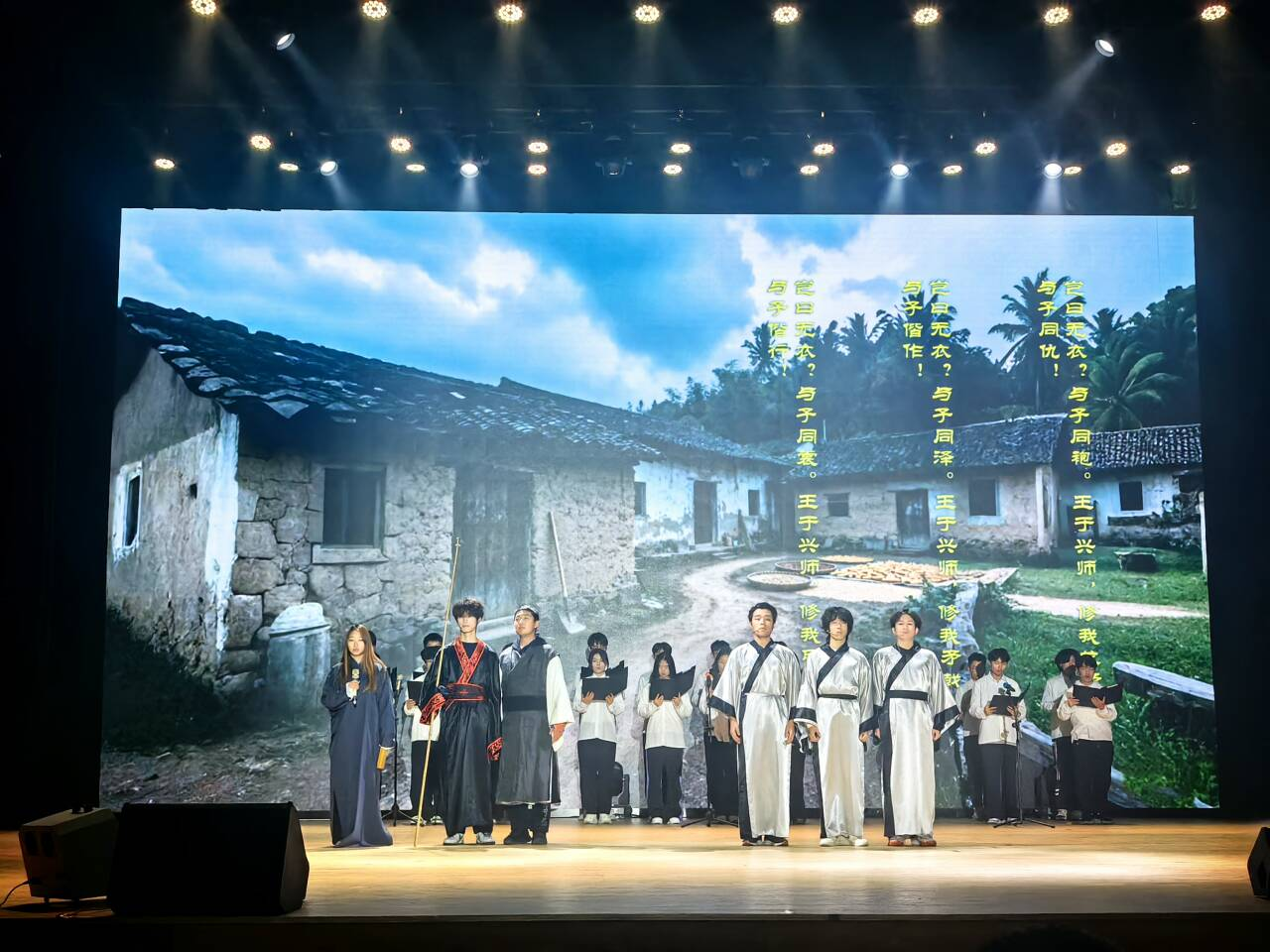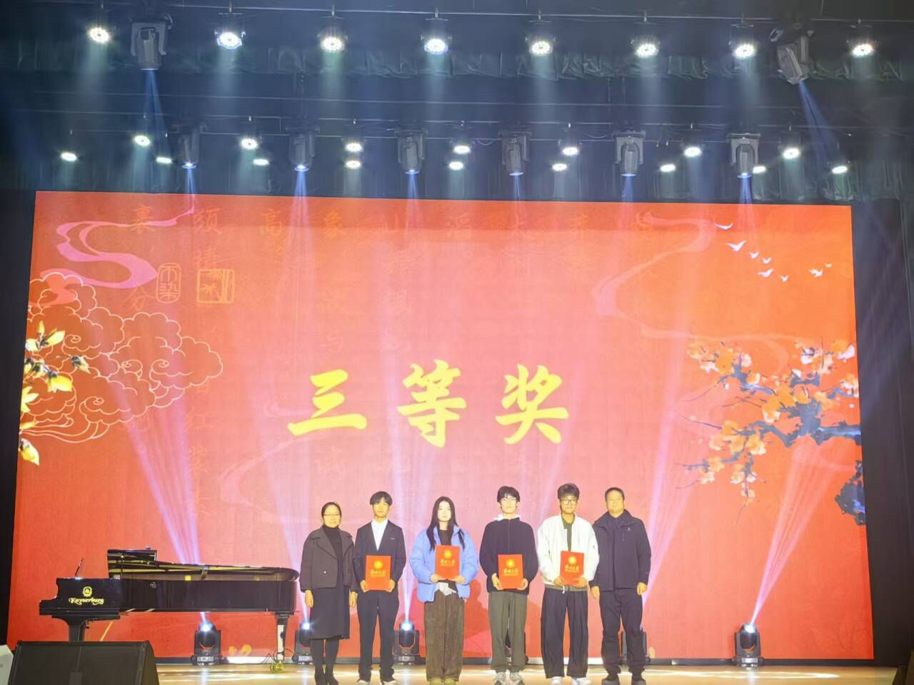 2025年11月26日第七届魅力华夏传统文化大赛决赛在常州大学西太湖校区的立艺楼举行。我院以话剧为载体,融合唱曲、朗诵多种元素,加以穿越等奇思妙想呈现的话剧《思无邪:诗经》在最终决赛中获得了三等奖的好成绩。