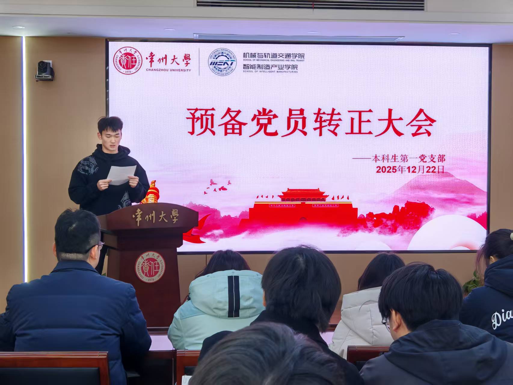 2025年12月22日,本科生第一党支部于乐行楼616召开了预备党员转正大会。本次会议主要讨论张世杰、刘金铭、赵承烨、唐灏源4名同志转正的问题,会议由支部组织委员张贺荣主持,支部全体党员参会。