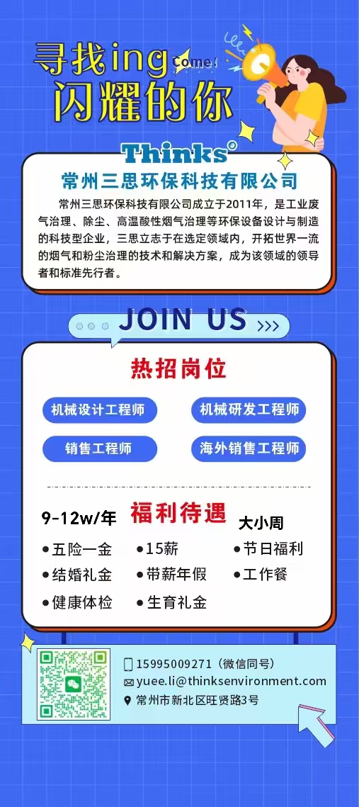 招聘230570:常州三思环保科技有限公司