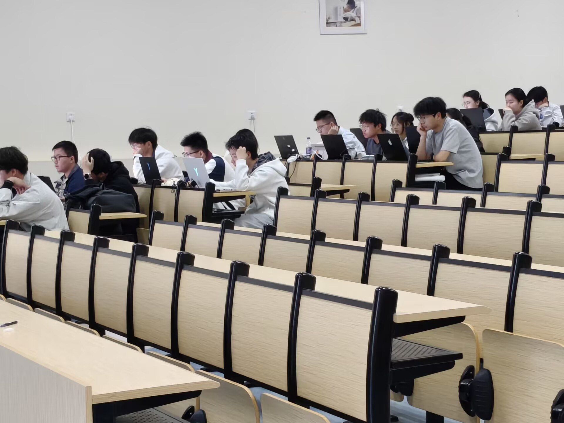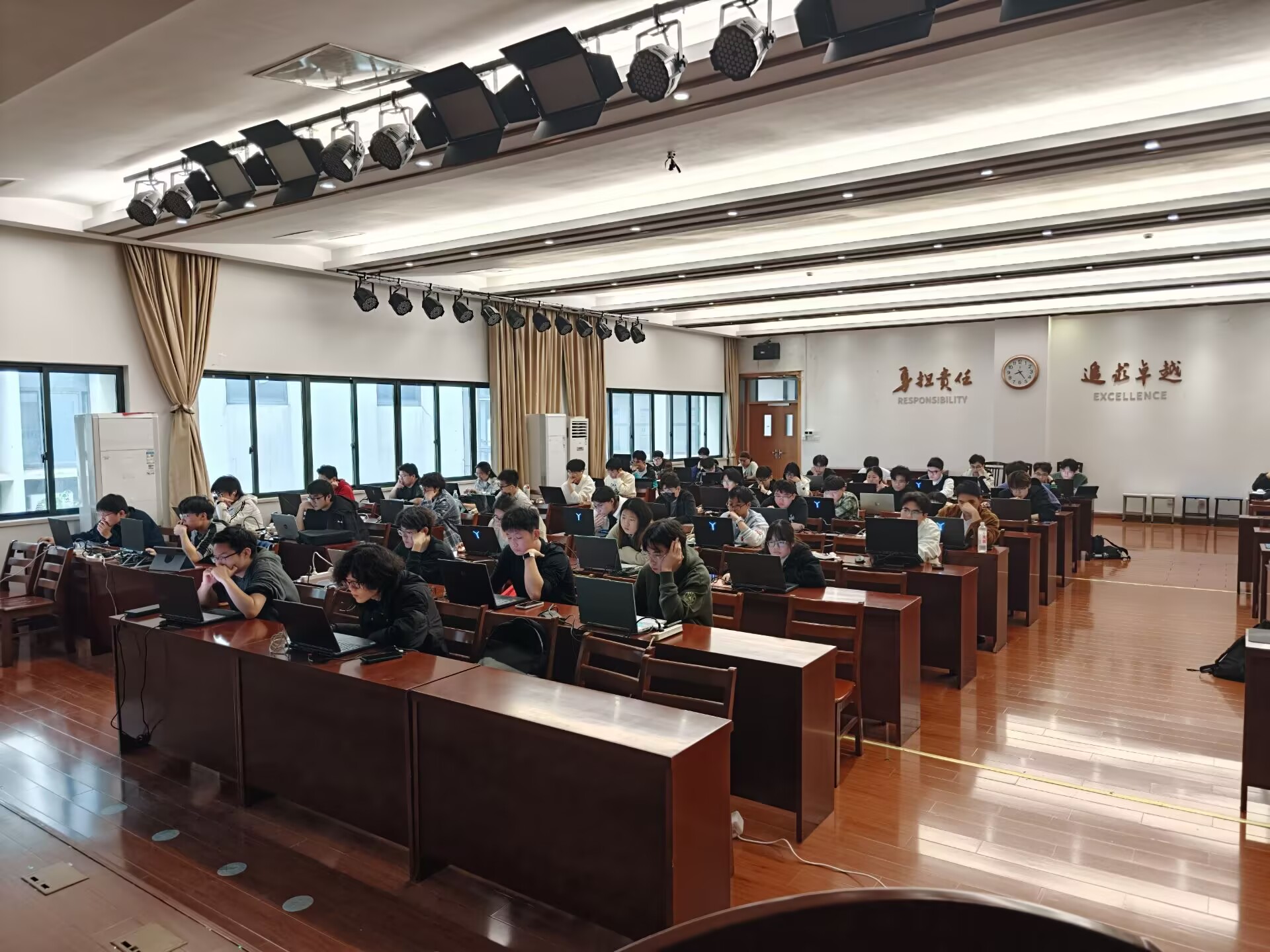 比赛过程中,监考人员全程坚守岗位,认真履行监考职责,严格维护赛场纪律,同时为参赛学子提供贴心服务,及时解答设备调试、赛事流程等相关问题,保障了赛事的平稳有序开展。18:00,赛事进入交卷环节,监考人员现场提醒参赛选手及时保存文件、规范转换格式并完成提交,逐一核对选手提交情况,确保每一份作品都能顺利上传、完整留存。在工作人员的有序引导下,所有选手均在18:30的截止时间前完成交卷,赛事各环节衔接顺畅、组织高效,充分展现了学院学生工作的精细化管理水平。